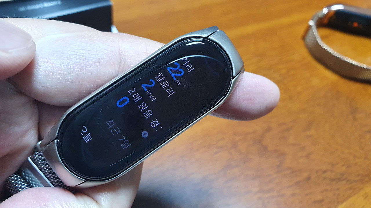 개인적으로 바뀐 점 중 가장 눈에 띄는 변화는 폰트의 사이즈업과 폰트의 교체가 아닐까 싶습니다. 5에서 쓰이던 기존의 폰트는 작기도 작지만 폰트도 시인성이 떨어져서 사용하기에 영 별로였거든요. 이제는 텍스트가 읽히지 않아 느껴지는 불편함이 상당부분 사라지지 않을까 생각됩니다. 요즘 IT계의 표현으로, 미밴드의 사용경험이 개선된단 거겠죠?