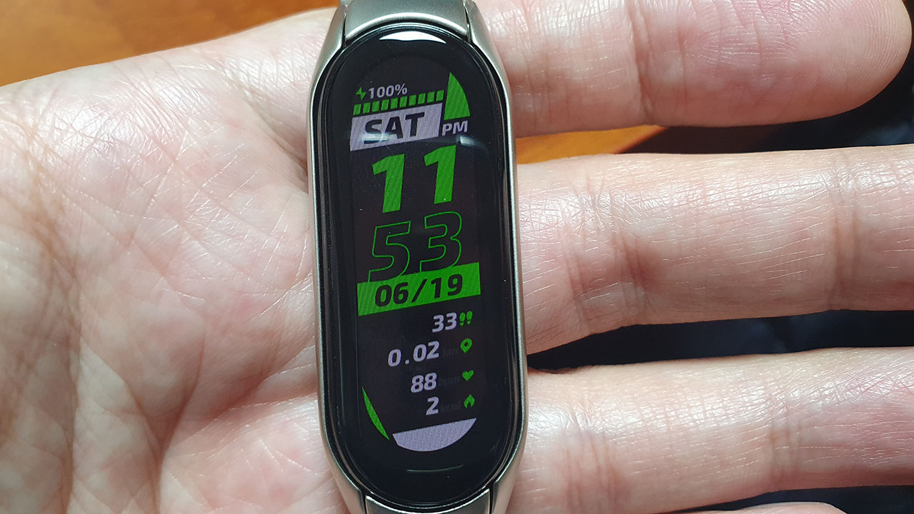 시원해진건 사실이나 단점도 있습니다. 비록 터치식이라도 미밴드5가 가지고 있던 하단 버튼이 사라지며 메뉴 이동의 직관성이 떨어지게됐고 그로 인해 조작에 약간의 어려움이 생겼다는 점입니다.