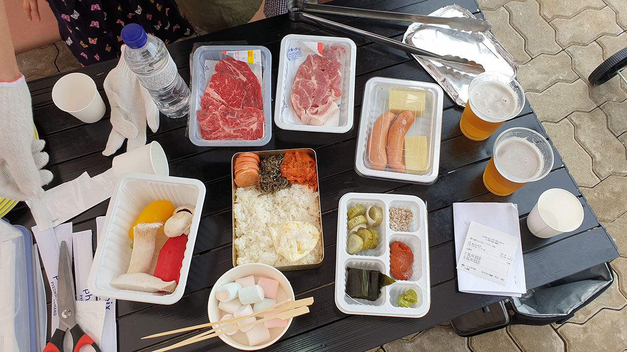 BBQ 관리실에서 맥주와 라면 등을 무한리필 할 수 있는데요, 일단 맥주와 마시멜로를 챙겨왔습니다. 음... 먹다보면 배가 찰수도 있겠다는 생각이...