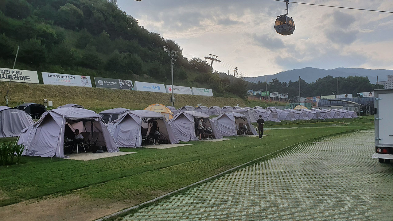 자리잡고 시작한 텐트에서부터 BBQ셋트가 배달되고 각 텐트별로 분주히 돌아갑니다.