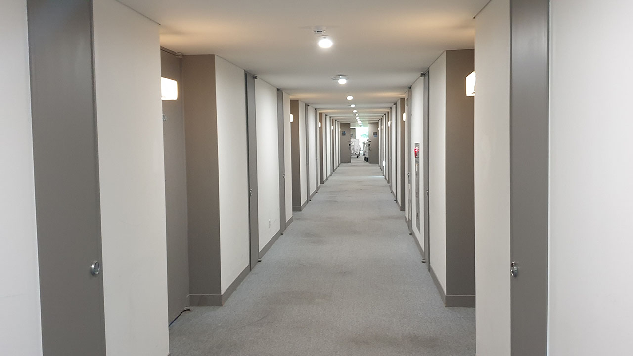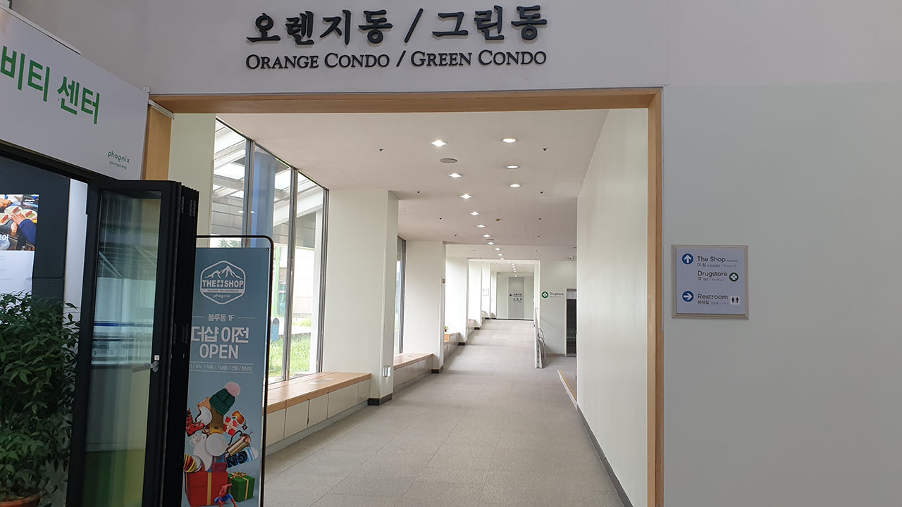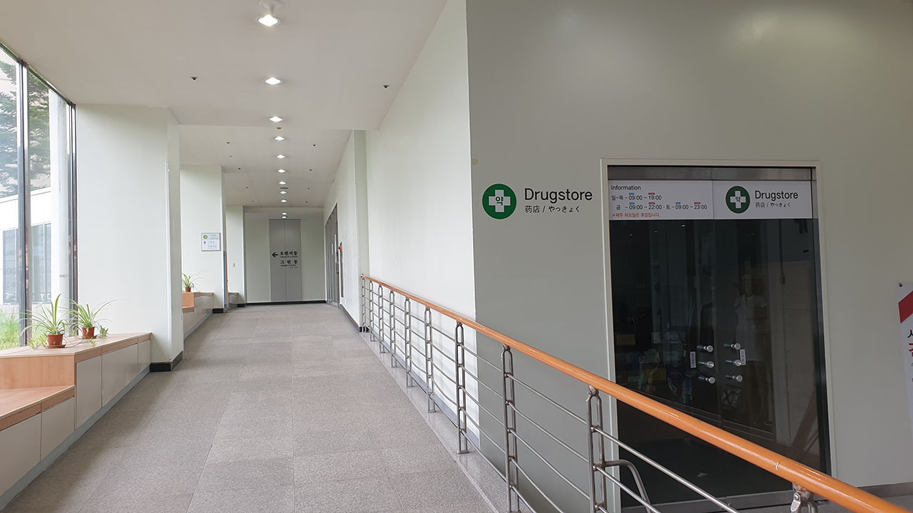 블루동에서 그린동으로 이동하는 길. 이용객이 적은 때라 약국이 문을 닫았는...