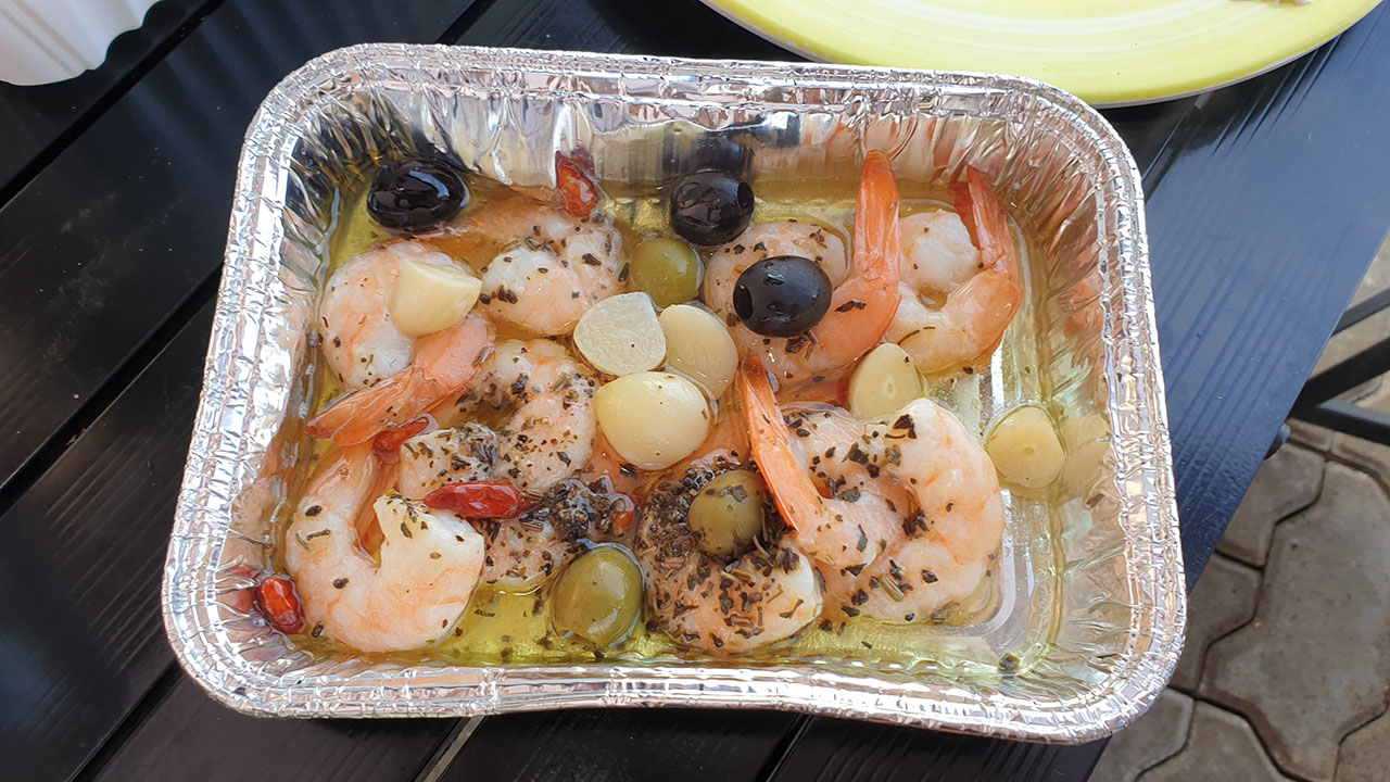 고기와 콘치즈 그리고 감바스까지 불에 올리고 굽기 시작합니다.