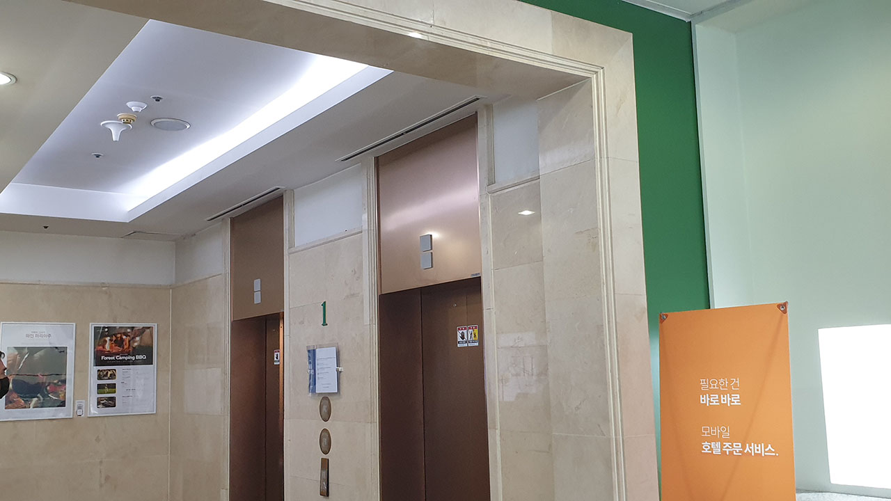그린동의 엘리베이터라 그린컬러로 구분해놓았습니다. 단순하지만 확실한 이런 컬러를 이용한 안내를 매우 좋아합니다.