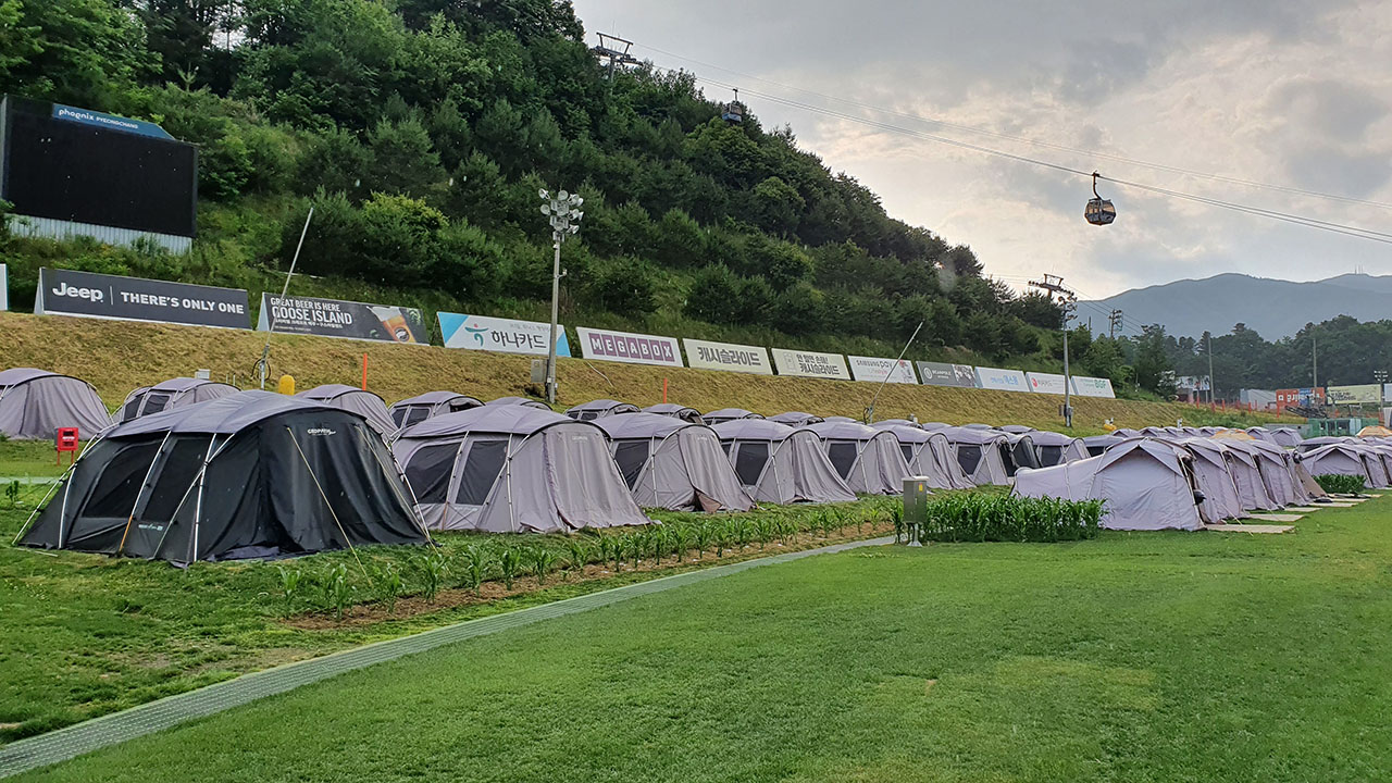 저녁즈음 시작하는 BBQ 사이트로 이동. 여름의 슬로프는 싱그런 맛이 있죠. 과거에 대명비발디에서도 BBQ를 해본적이 있는데 그때도 나쁘지 않았던 기억이네요.