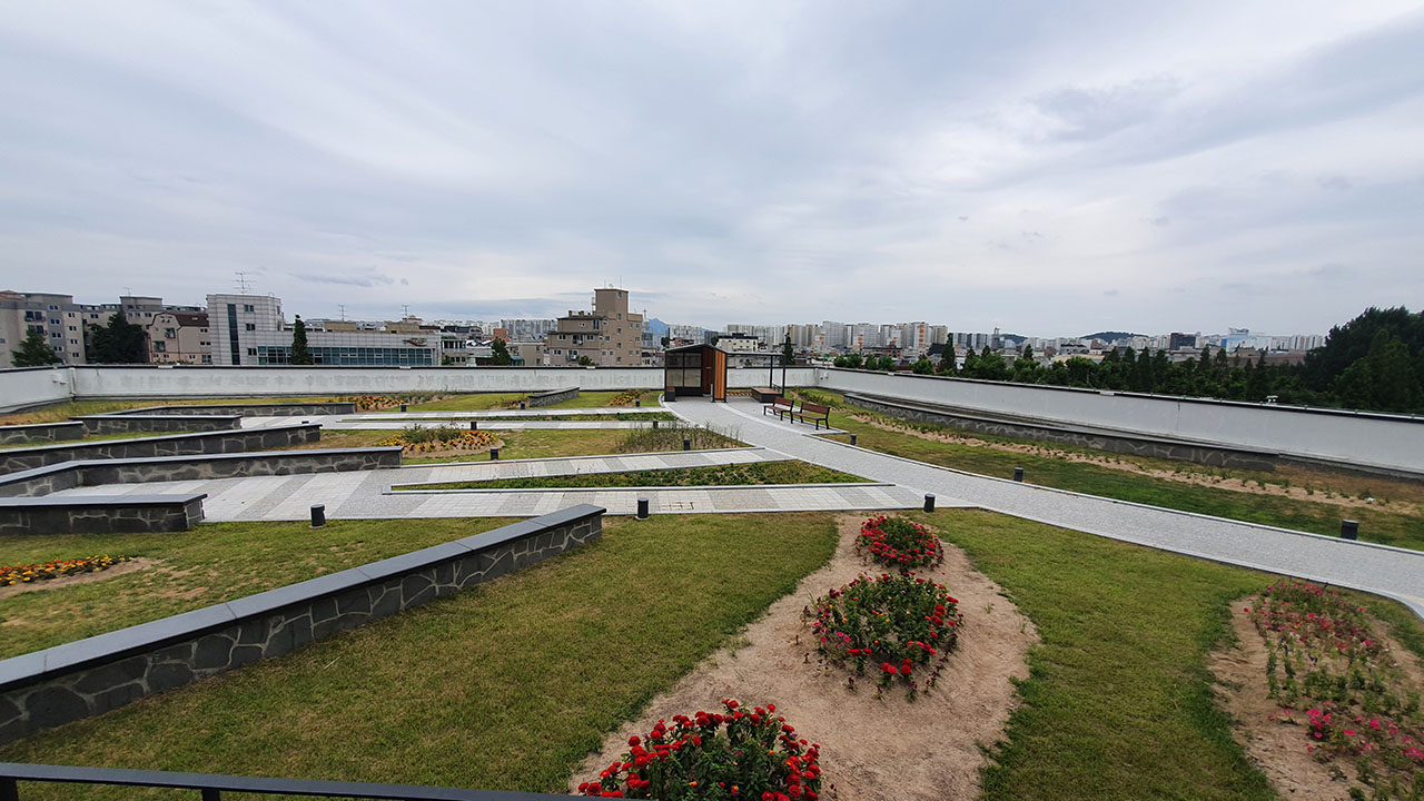 그리고 건물의 가장 윗층으로 이동하면 이렇게 야외공원이 나옵니다. 날씨가 좋다면 더할나위없이 멋진 공간이 될듯하네요. 이착륙하는 비행기보며 김밥먹는 기분도 좋을것 같구요.