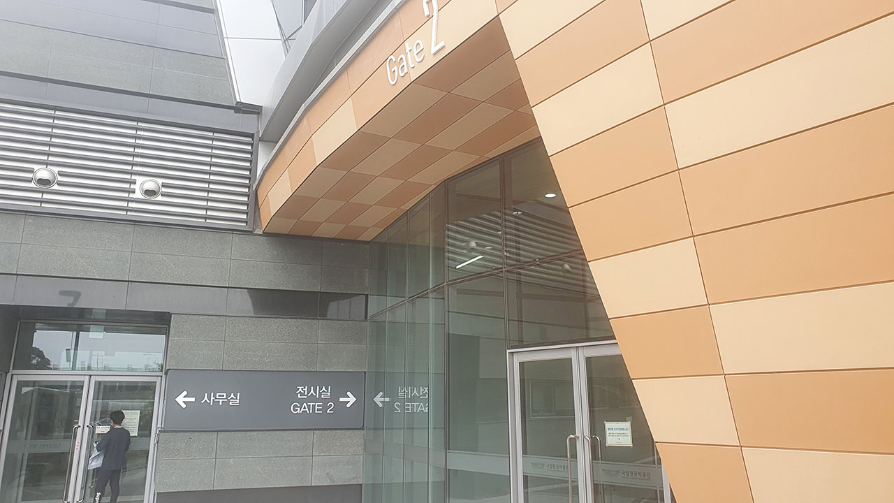 지하주차장에서 엘리베이터를 타고 올라가면 바로 박물관 내부로 이어지진 않습니다. 게이트2번으로 나온 후 건물 외벽을 돌아서 게이트1번으로 입장해야 합니다.