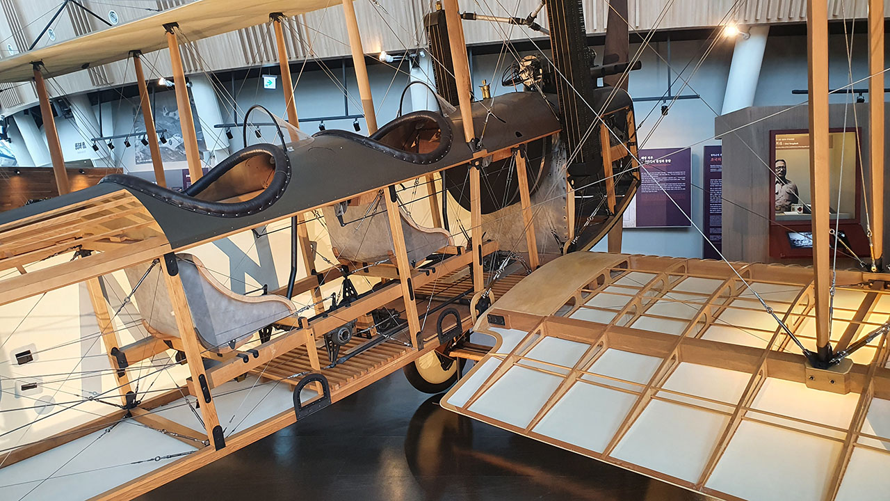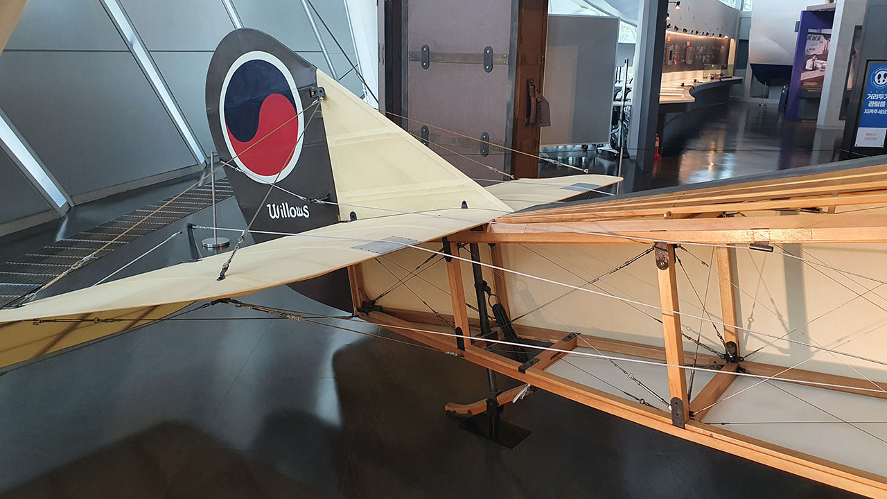 정말 옛날의 기체를 이렇게 디테일하게 재현해서 전시해놓았는데요, 내부의 구조를 볼 수 있게끔 한쪽이 오픈되어있습니다. 어떤 비행기인지 궁금해서서 검색을 해보니 과거 식민지시절 임시정부가 미국에 그 지역명을 딴 윌로우스 한인비행학교를 만들었다고 하며, 그곳에서 훈련기로 쓰이던 스탠다드 J-1 이라고 합니다. 왜 이렇게 정성을 들여 재현품을 만들어 놓았는지 대번에 이해가 되네요.