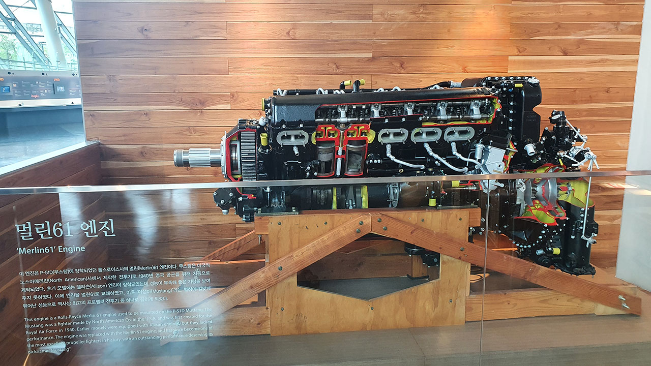 머스탱의 엔진이라는 멀린엔진이 있네요. 한국공군 초창기에는 미국으로부터 받은 머스탱이 핵심전력이었으니 그 엔진을 전시해놓을만 하겠네요. 그리고 그 머스탱 중에서도 '신념의 조인' 이라는 글을 새긴 기체는 아주 유명하죠.
