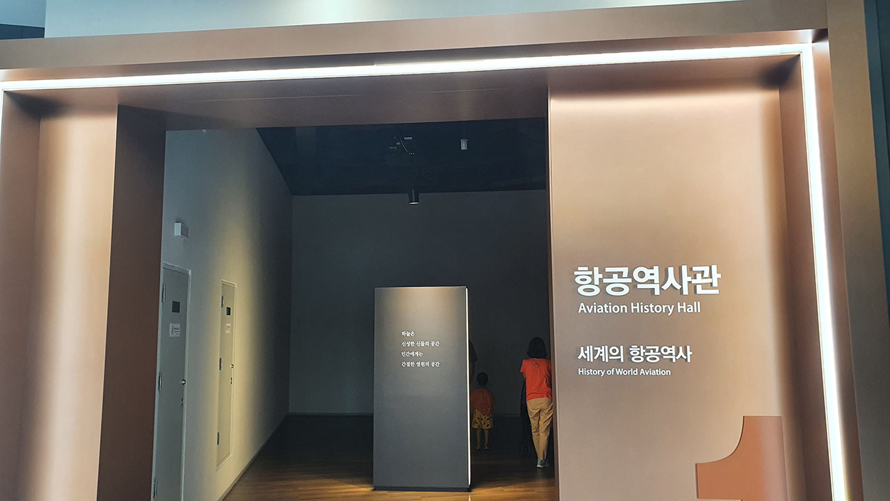 발길이 닿는 가장 가까운 전시관인 항공역사관으로 들어가봅니다. 2020년 개관한 건물인만큼 모든 시설물에 간결한 디자인이 흐르고 있고 새것의 느낌도 강하게 납니다.