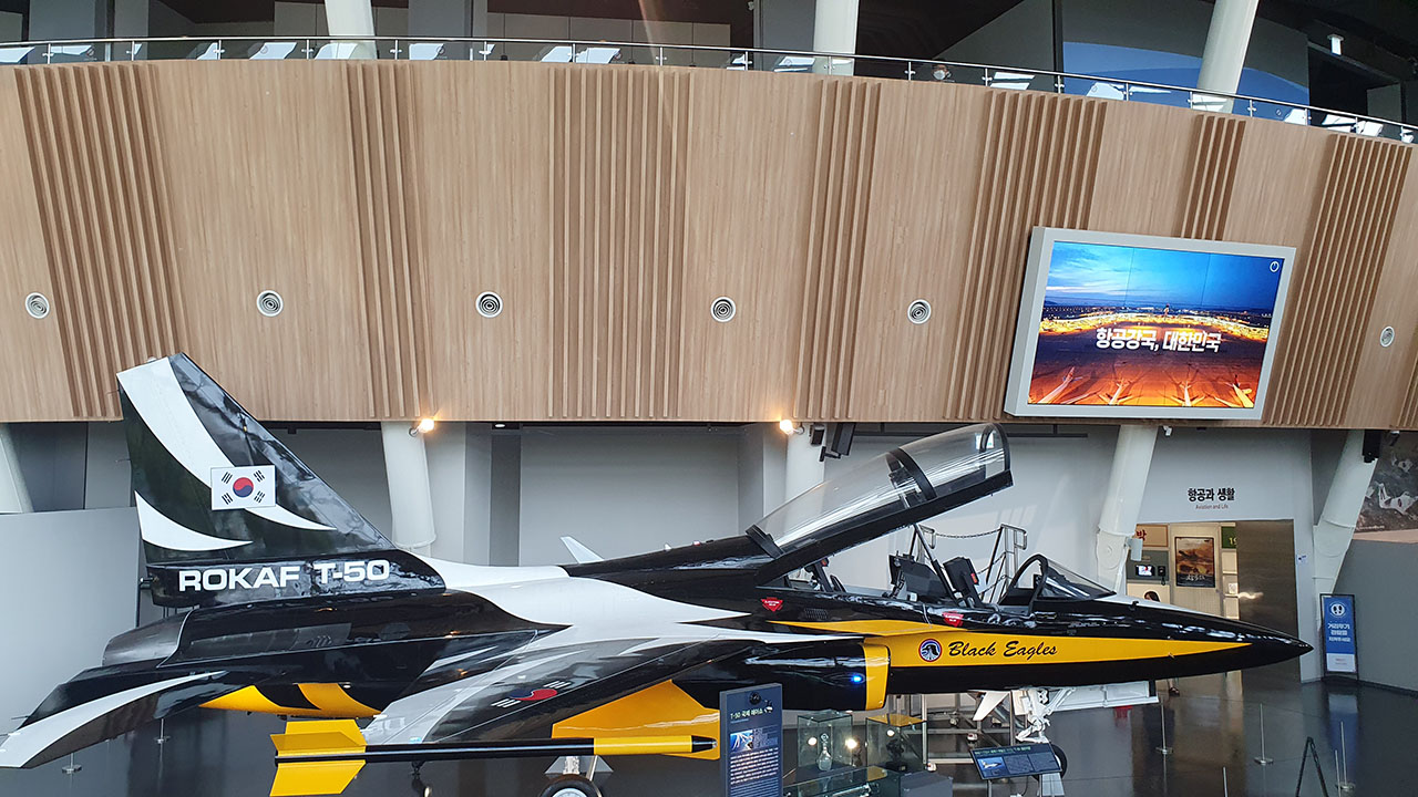 지금의 공군을 설명하면 빠질 수 없는 T-50입니다. 이 기체는 공군특수비행단 블랙이글인데 실물이 아닌 모형입니다.