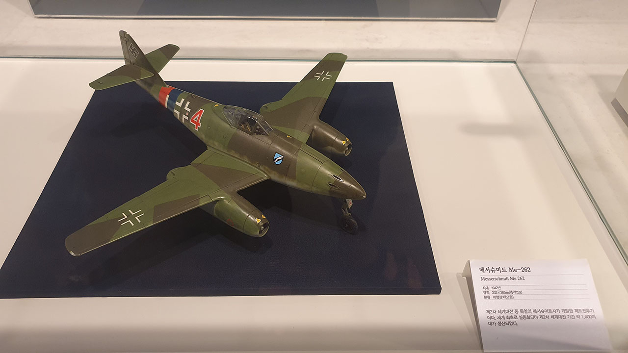 세계전쟁사나 밀리터리쪽으로 조금 관심이 있다면 알아볼 수 있는 기체 Me-262 슈발베입니다. 2차 세계대전 말기에 실전에 등장한 제트전투기죠. 프롭기에서 제트기로 넘어가는 과도기의 1세대 기체이다보니 전체적인 형상은 2차세계대전 당시의 프롭기와 비슷하지만 엔진이 완전 다른게 특징이죠. 개인적으로는 언밸런스는 당연하고 참으로 못생긴 비행기 중 하나라고 생각합니다.