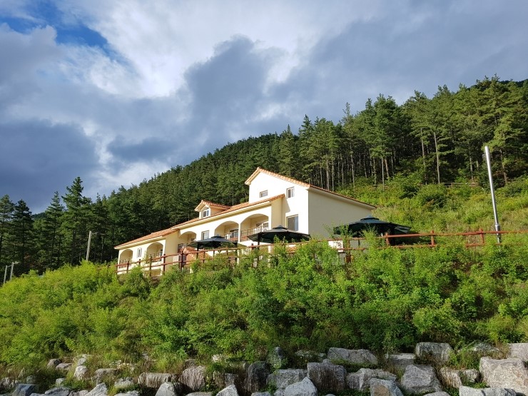 휴양관은 도로보다 살짝 높은 곳에 위치하여 자연스레 우러러 보게되다보니, 더 이뻐보이고 커보이는 효과가 있습니다.
