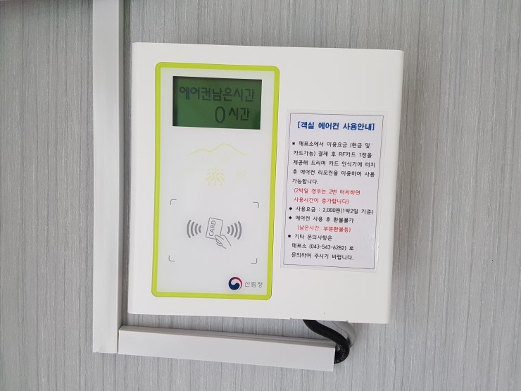 2천원으로 24시간 이용이 가능한데, 관리사무소에서 금액이 충전된 카드를 구입하고 숙소에 마련된 이런 기기에 갖다대면 구입한 시간(24시간)동안 사용이 가능해집니다.