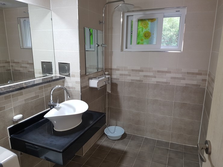 특히 저 해바라기 샤워헤드가 달린 수전이 호텔급(?)의 시설처럼 느껴져서 그런지 이용만족감이 상당히 높았습니다.