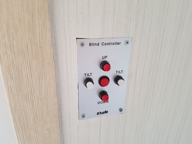 딱 봐도 사용법을 알 수 있을 정도로 단순한데, 붉은색 버튼으로 블라인드를 위아래로 움직이고(가운데 붉은 버튼은 Stop 역할)