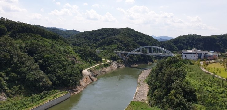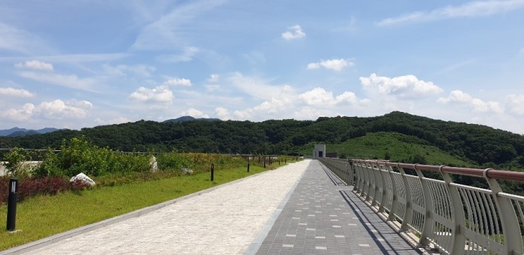 사진은 댐의 상부를 찍은 사진인데 이를 산책길로 조성해둔 아이디어가 좋아보입니다.
