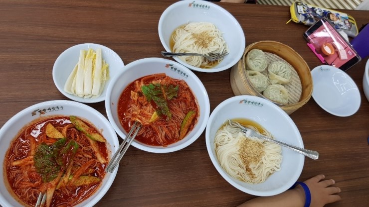 우린 비빔국수(보통) 2개에 아기국수 2개 그리고 만두를 주문했습니다.