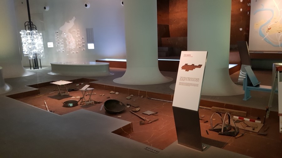 선사시대의 유적은 이러한 발굴 과정을 통해 세상에 알려지게 되는 것을 단면적으로 보여주는 소품들입니다.