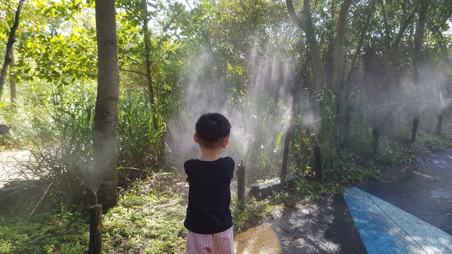 박물관을 퇴관하고 나가는 길에 이렇게 스프레이 냉방시설이 있네요.