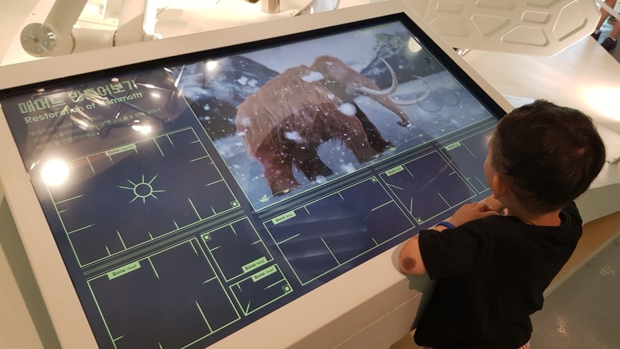 메머드 화석코너 한편에 메머드의 뼈를 조립하면 메머드가 움직이는 간단한 게임이 준비되어 있습니다.