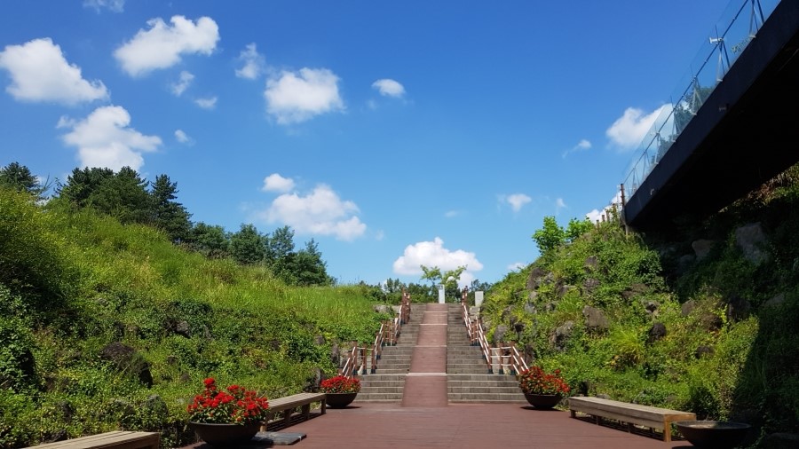 하늘과 맞닿아 있는 느낌의 계단도 좋고, 사진에 나타나있진 않지만 테이블과 의자들이 주변에 배치되어있어서 시원하게 휴식도 가능한 공간입니다.