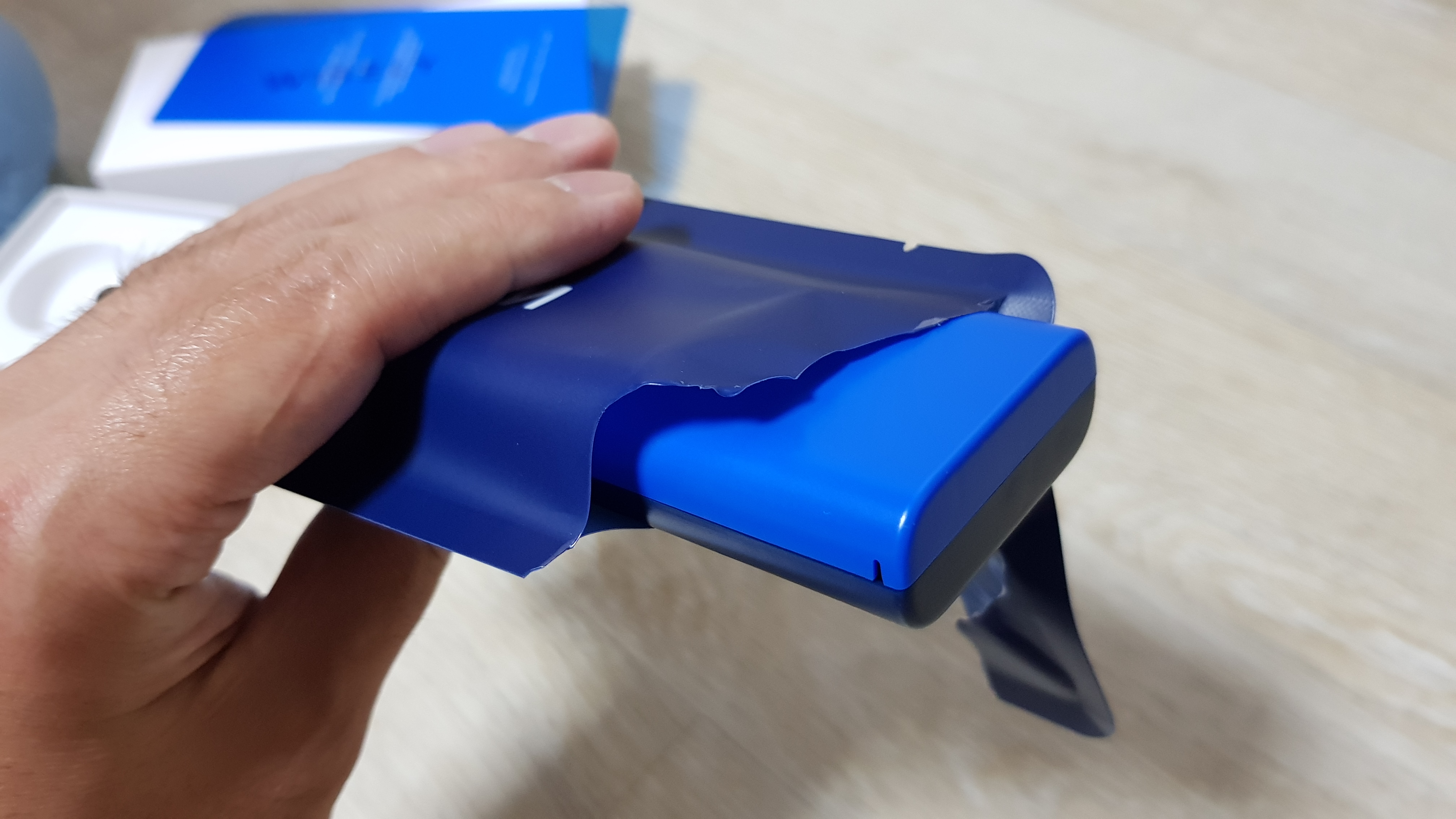눈에 보이는 재질이 다르다보니 아무래도 구형과 신형간의 무게차이가 있지 않을까 싶은데요, 손저울로 들어보니 큰 차이는 없네요. 구형은 눈으로 보이는 외관이 전부 플라스틱과 러버재질인데 내부에 무게를 위한 금속이 들어있는듯 합니다. 면도기는 적당한 무게감이 있어야 합니다. 망치가 가벼우면 못이 솟듯, 수염을 밀고나갈 수 있는 적당한 무게감과 힘이 면도기에는 필요합니다. 가벼운 일회용 면도기가 괜시리 쓰기에 불편한 것이 아니죠.