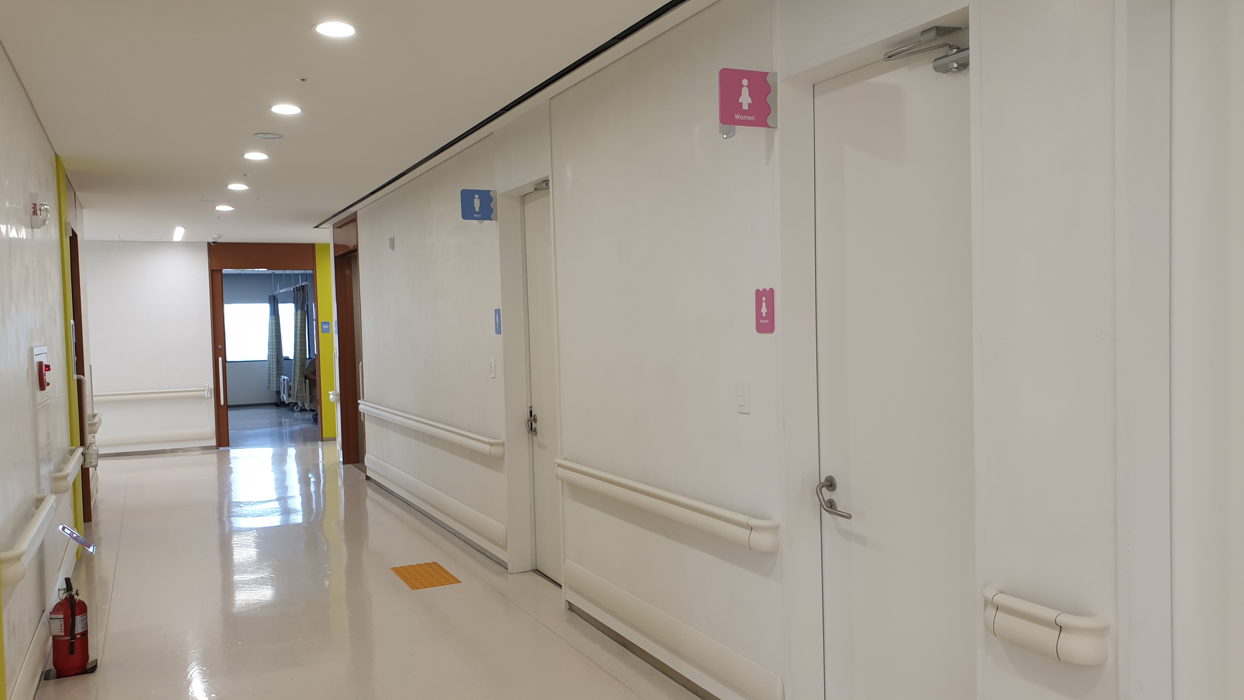역시나 모든 시설이 새것이며 관리가 잘 되고있는 편입니다. 용변 후 따로 물내림 버튼을 누르지 않아도 사람의 움직임을 감지해서 볼일이 끝났다싶으면 물을 자동으로 내립니다. 거동이 불편한 환자를 위한 스마트한 기능이라 생각됩니다.