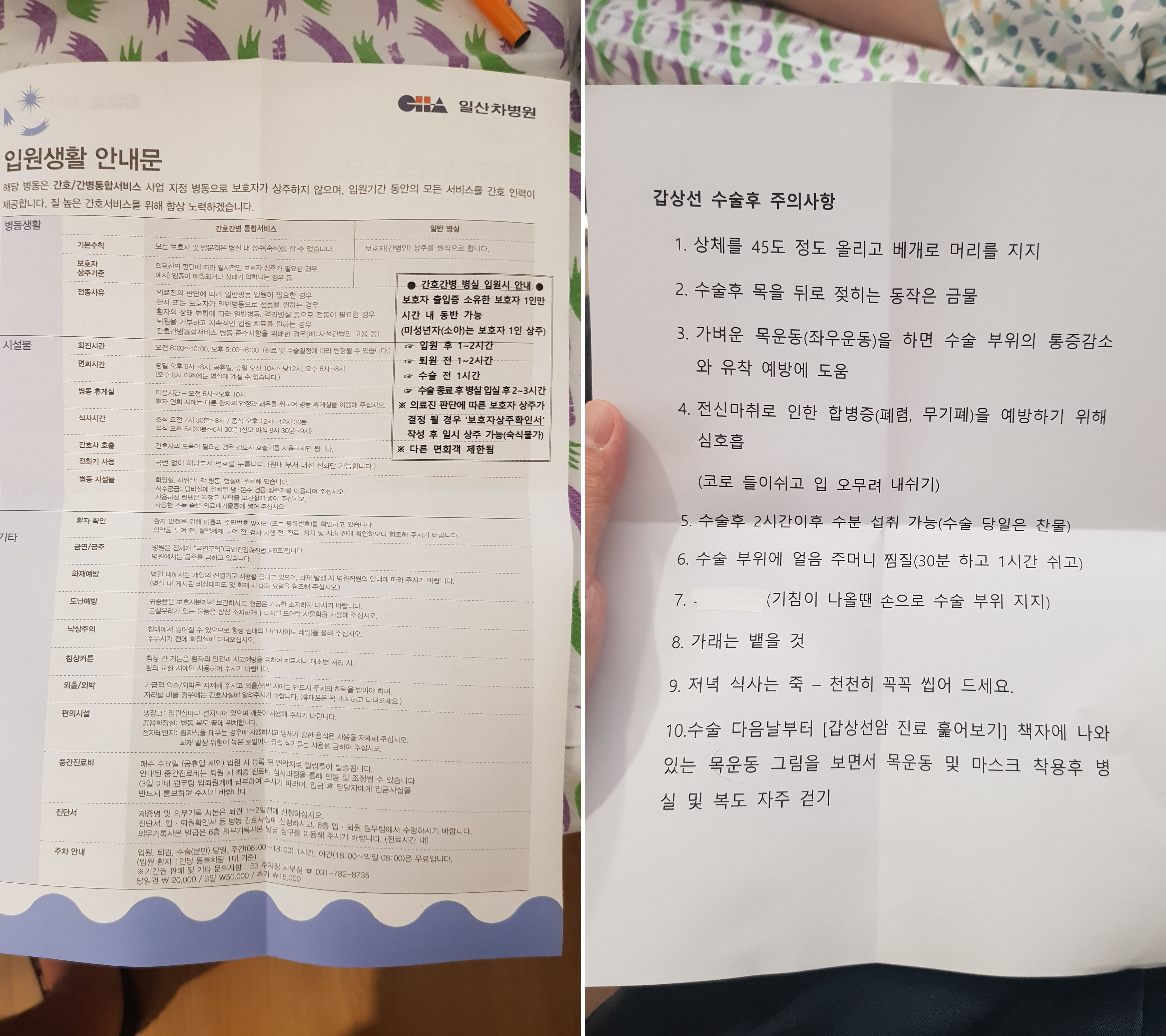 | 갑상선암 입원/수술 후기(2), 일산 차병원(사진 많음) (0) | 2020.10.12 |