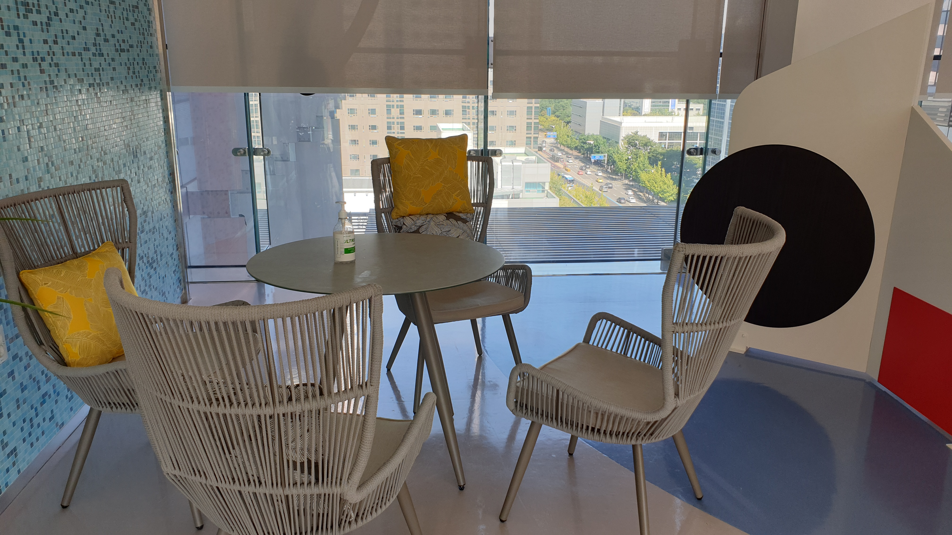 갑상선암이 비교적 회복이 빠르고 몸에 무리가 적어서 입원중인 환자들이 자주 휴게실에 나와 담소를 가지는데요, 이럴땐 이런 티타임용 테이블셋이 좋지요. 코로나로 마스크를 쓰고서 면회하는 모습들이 그리 편해보이지는 않았지만, 병실에서 마냥 쳐져있는거 보다야 백배낫지요.