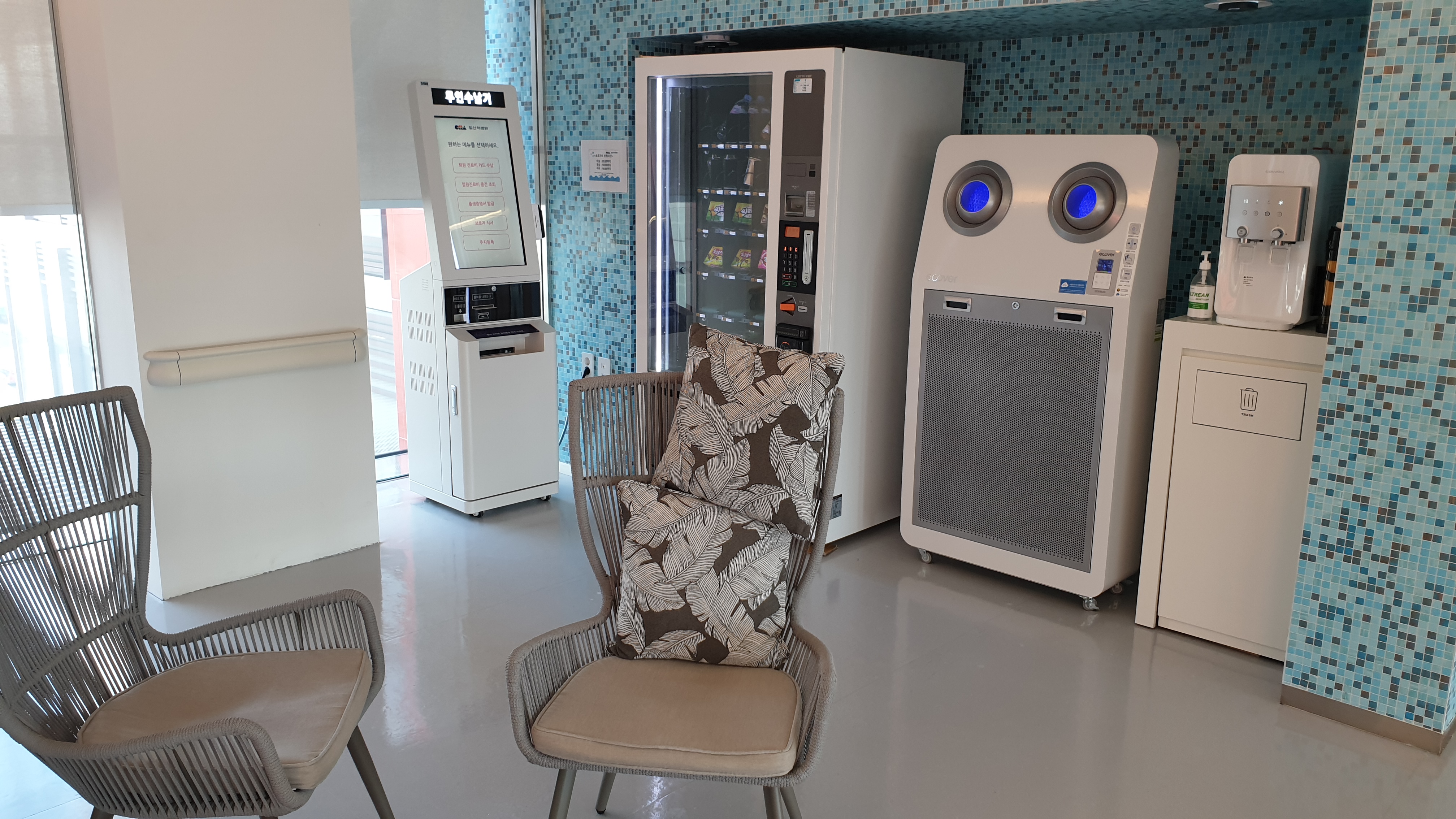 왼쪽부터, 무인수납기(차량등록 등 다른 일도 처리), 스낵자판기(현금, 카드가 된다고 하는데요 삼성페이는 안됩니다), 공기청정기, 냉온수기 등이 있습니다.