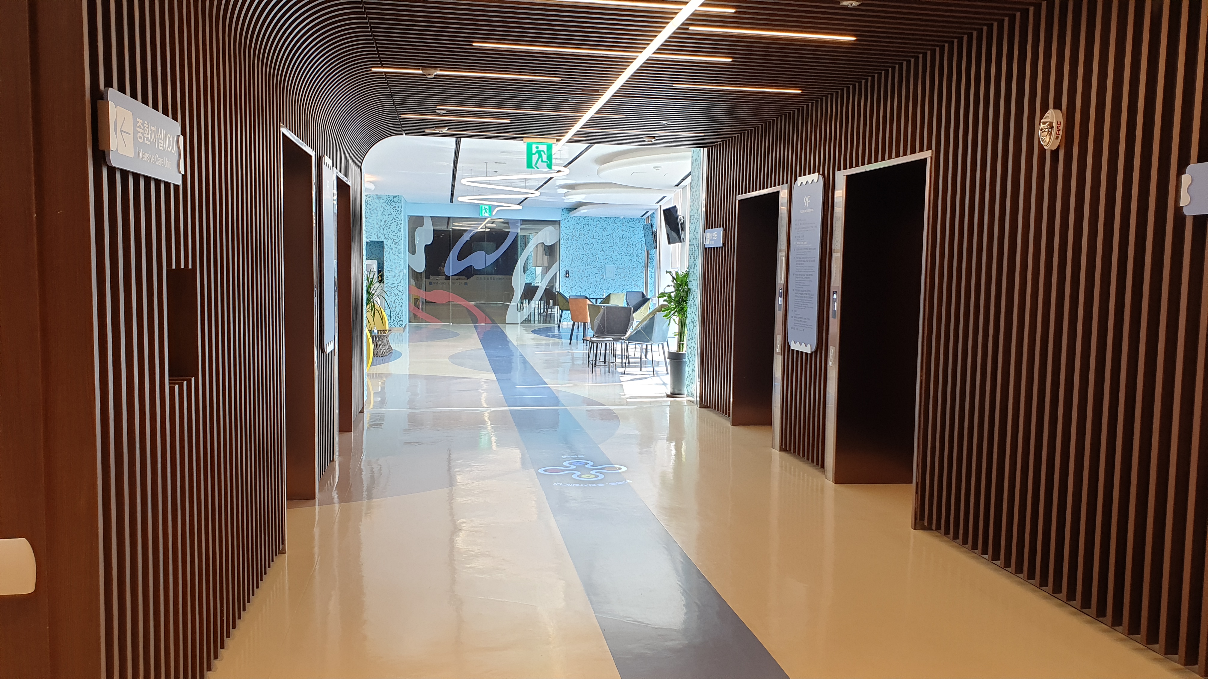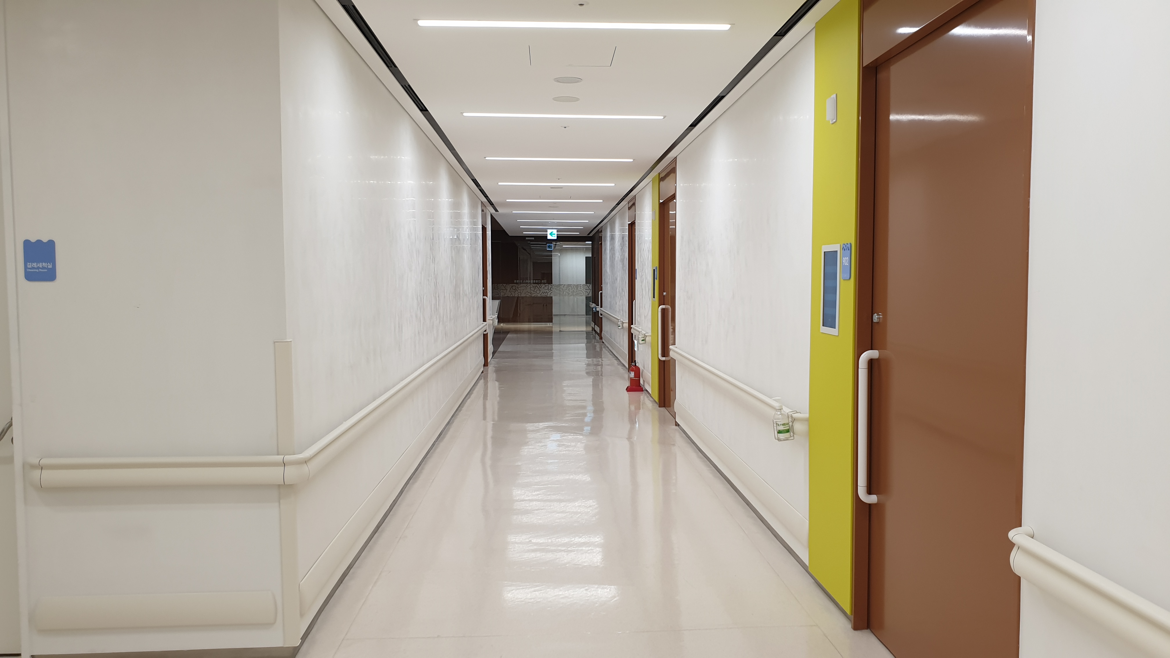 병원이 병원답지 않은 인테리어를 가지고 있습니다. 이후의 사진들에서도 확인이 가능한데요, 일단 병실도 다른 병원들과 비교해서 뭔가 환하고 따뜻한 느낌이 강합니다. 우드의 컬러와 무늬를 많이 쓴 영향도 커보입니다.