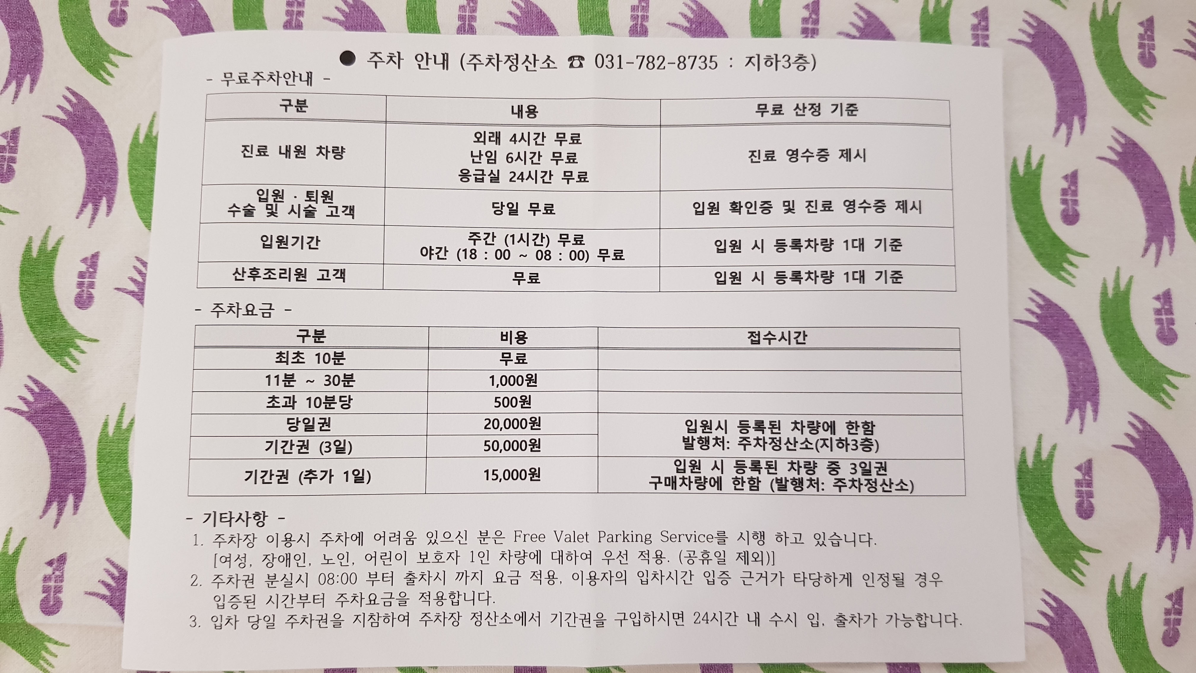 그외는 오후 6시부터 익일 오전 8시까지는 무료주차가 된다고 하니 속편하게 이 시간대에 면회를 하시는 것도 하나의 방법이라 봅니다.(등록된 차량은 입원기간동안 1시간 무료가 있으므로 오후 5시에 입차하면 밤늦게 출차해도 무료라는)
