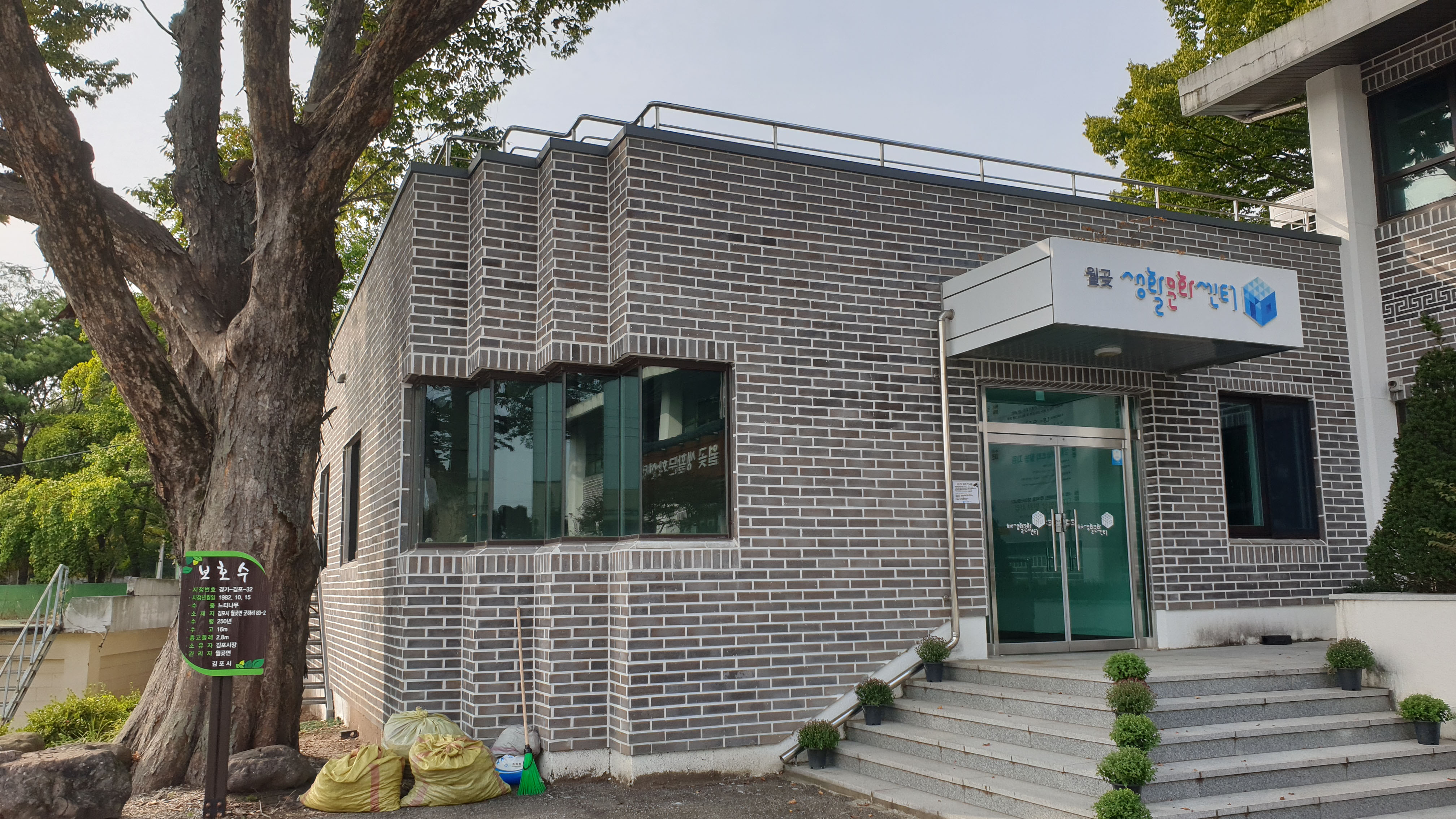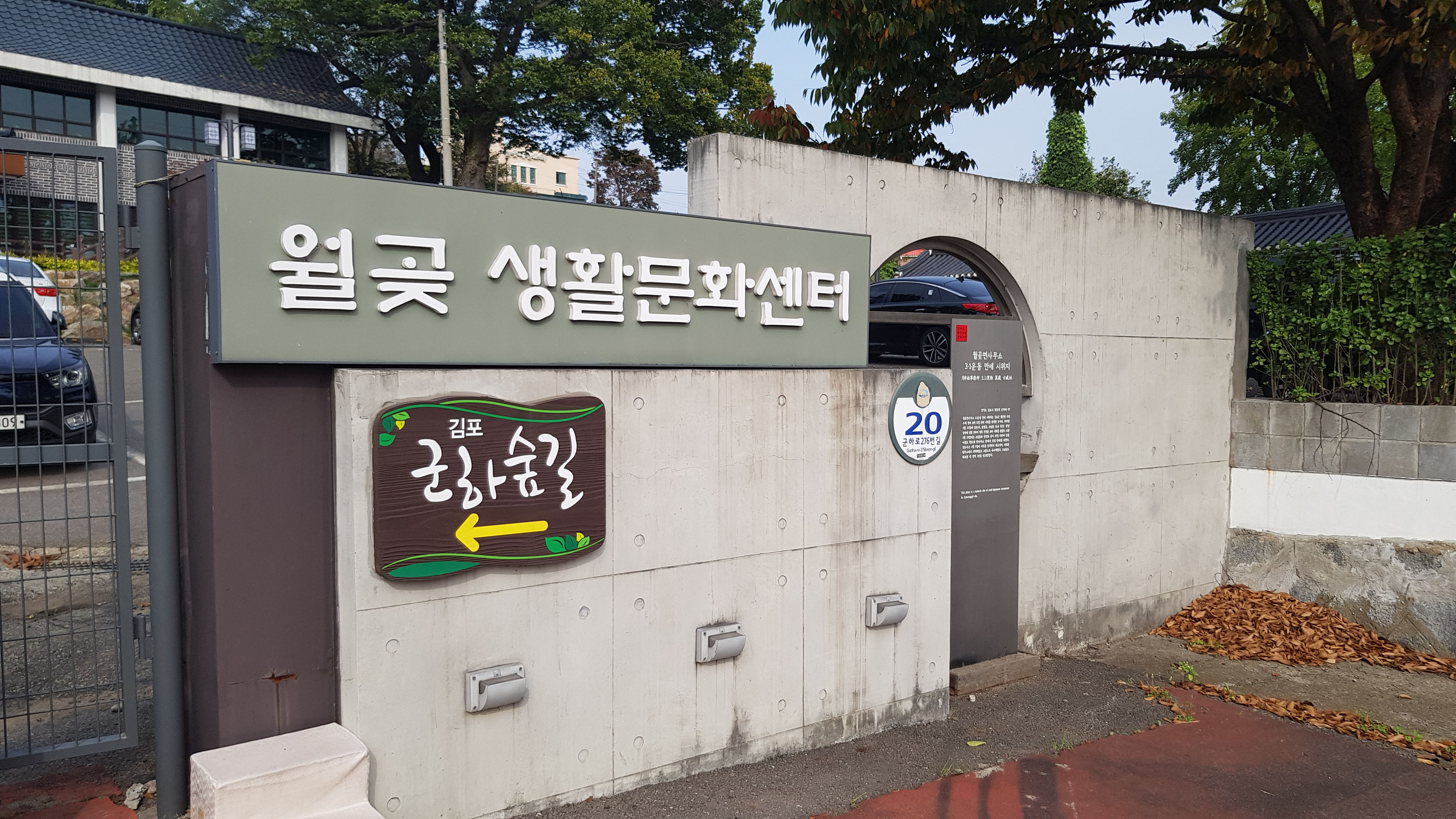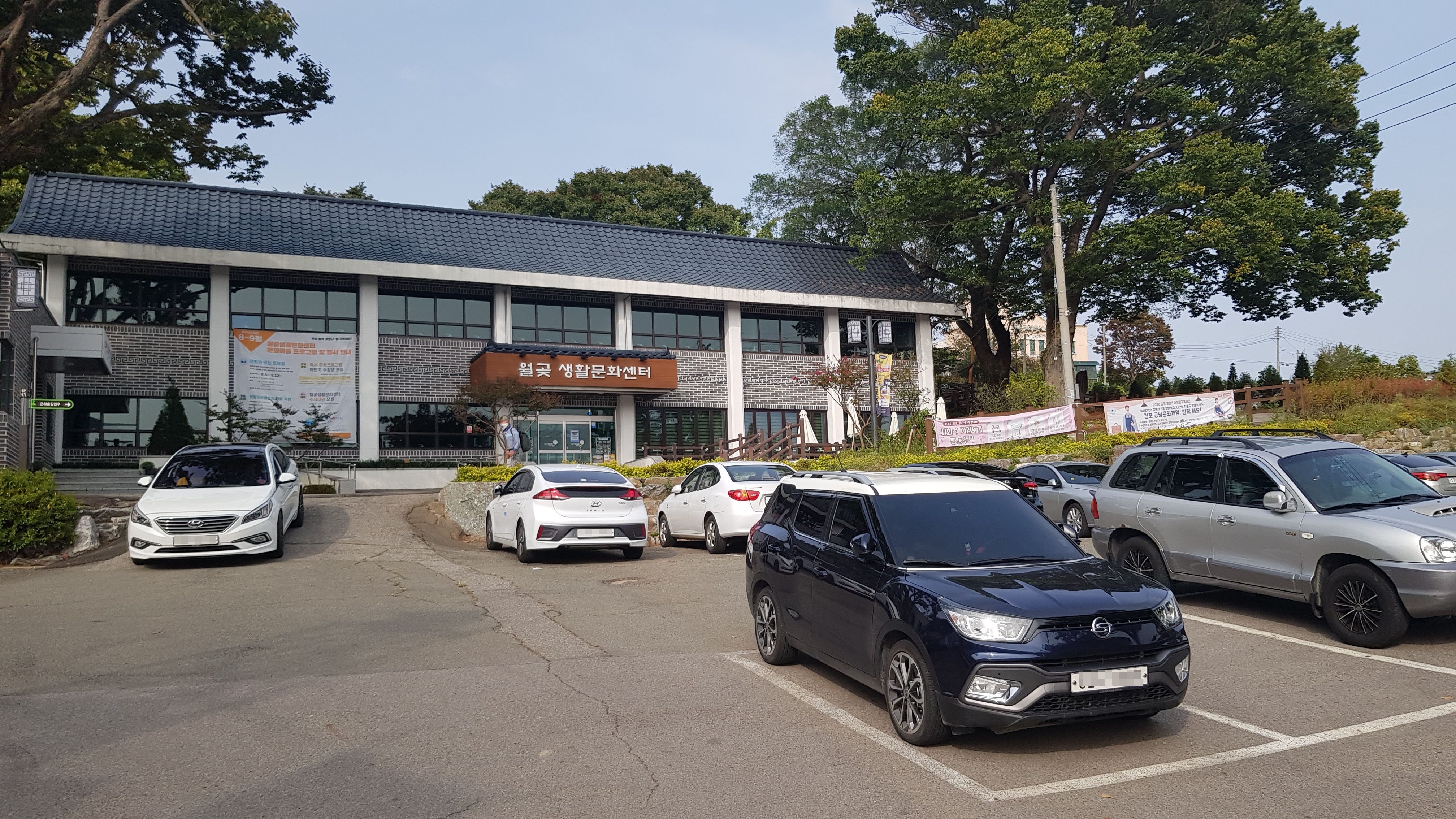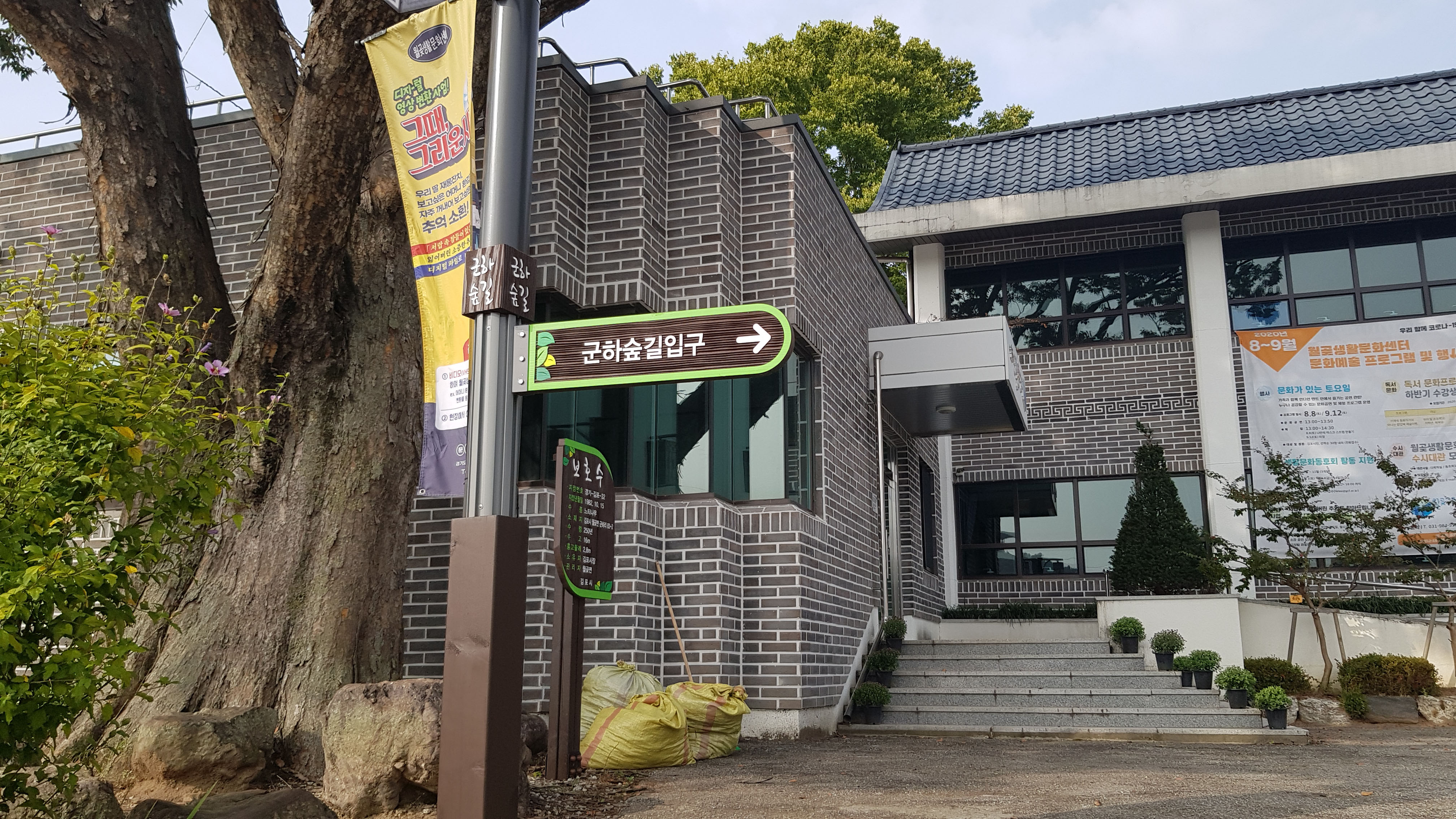 입구를 들어와서 보면 지어지지 그리 오래되지 않을법한 2층 생활문화센터건물이 보이며 그 앞으로 주차장이 있습니다. 군하숲길을 찾은 방문객들은 여기에 주차합니다. 물론 저희도요.