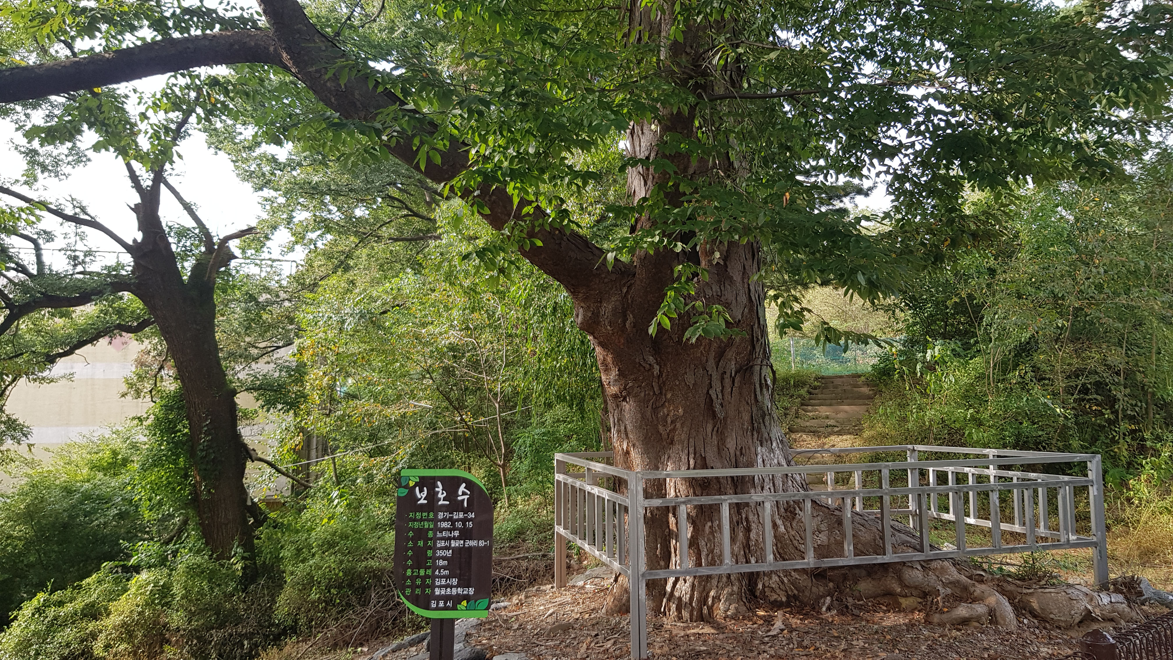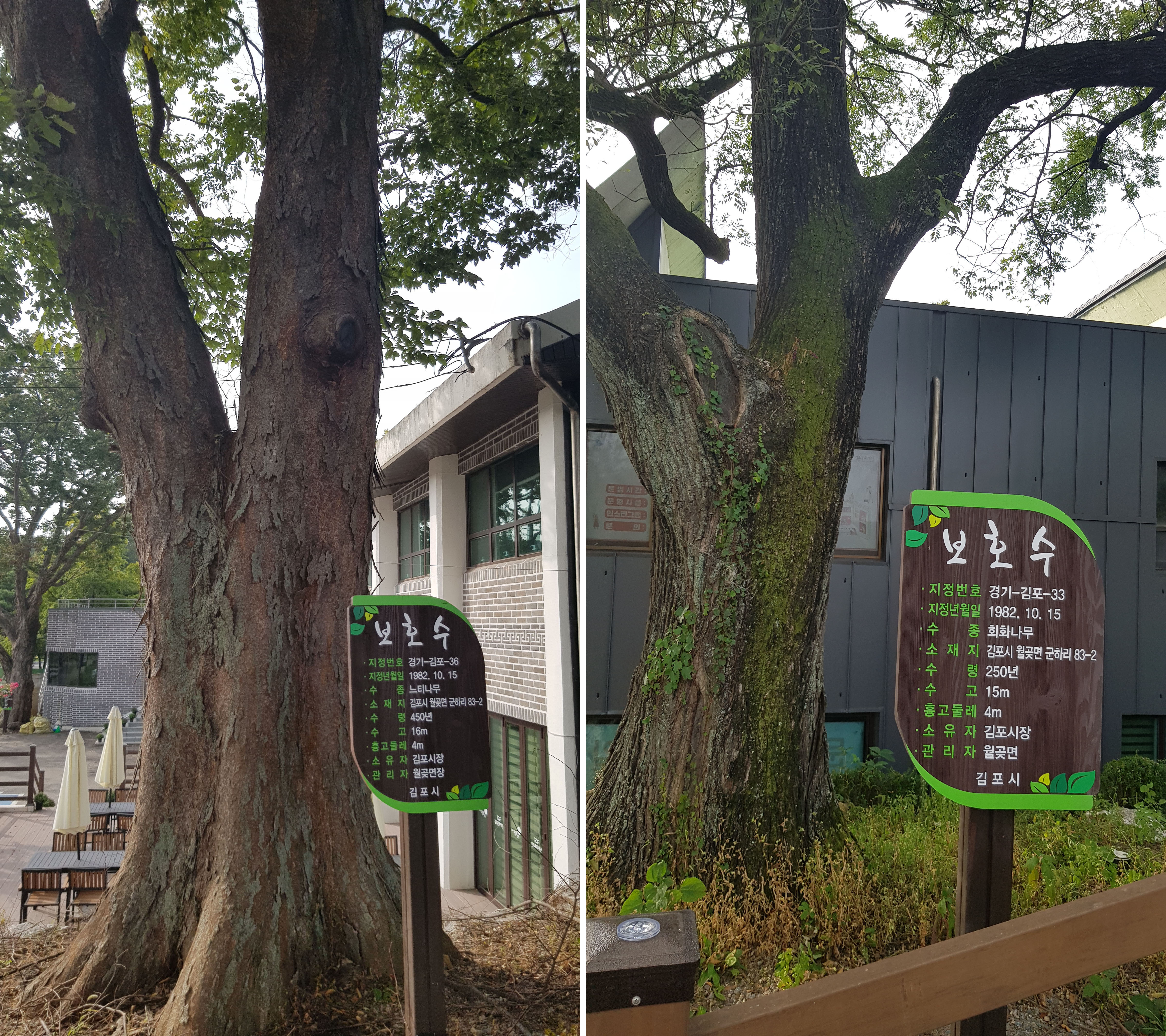 450년, 350년, 250년. 군하숲길 근처에서 만나는 나무들의 수령인데요, 크기도 크지만 나무들도 건강해보였습니다.