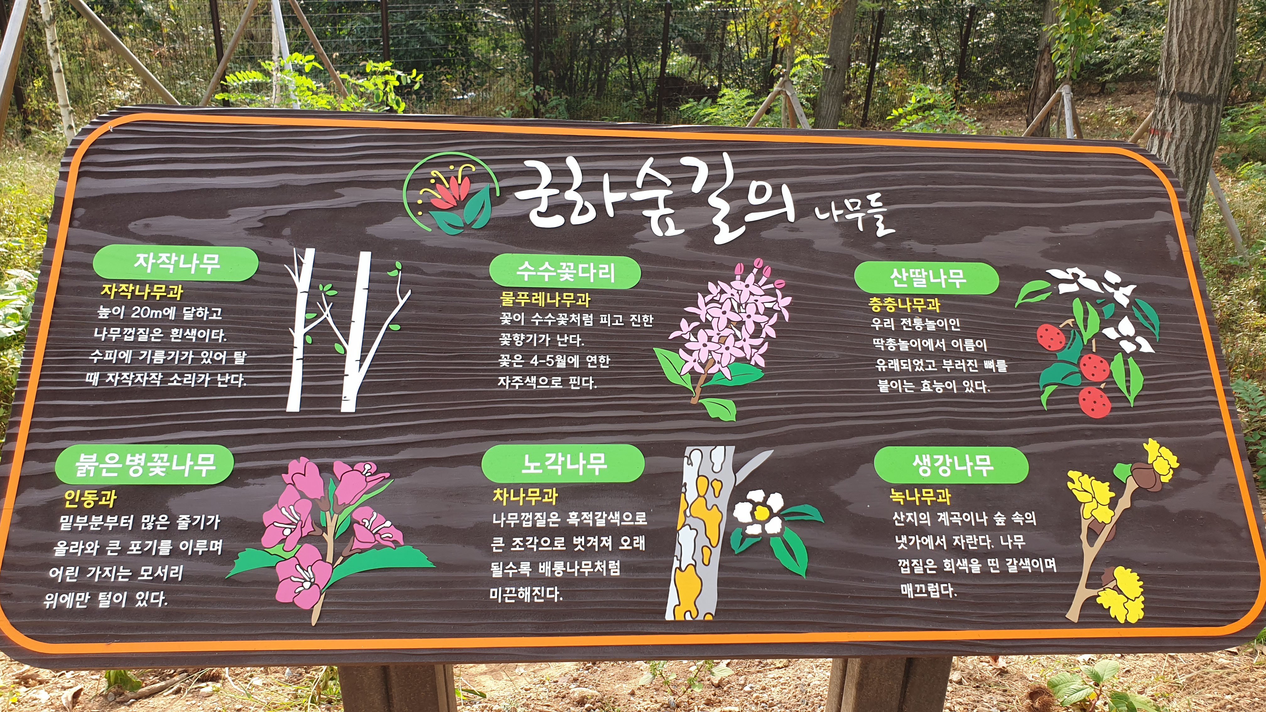 가족단위로 도시락을 싸가지고 왔다면 이용하기에 참 좋아보이는 공간입니다. 아마 군하숲길이 지금보다 외부에 더 알려지게되면 저기에도 자연스레 이용객이 늘어날거라 봅니다.