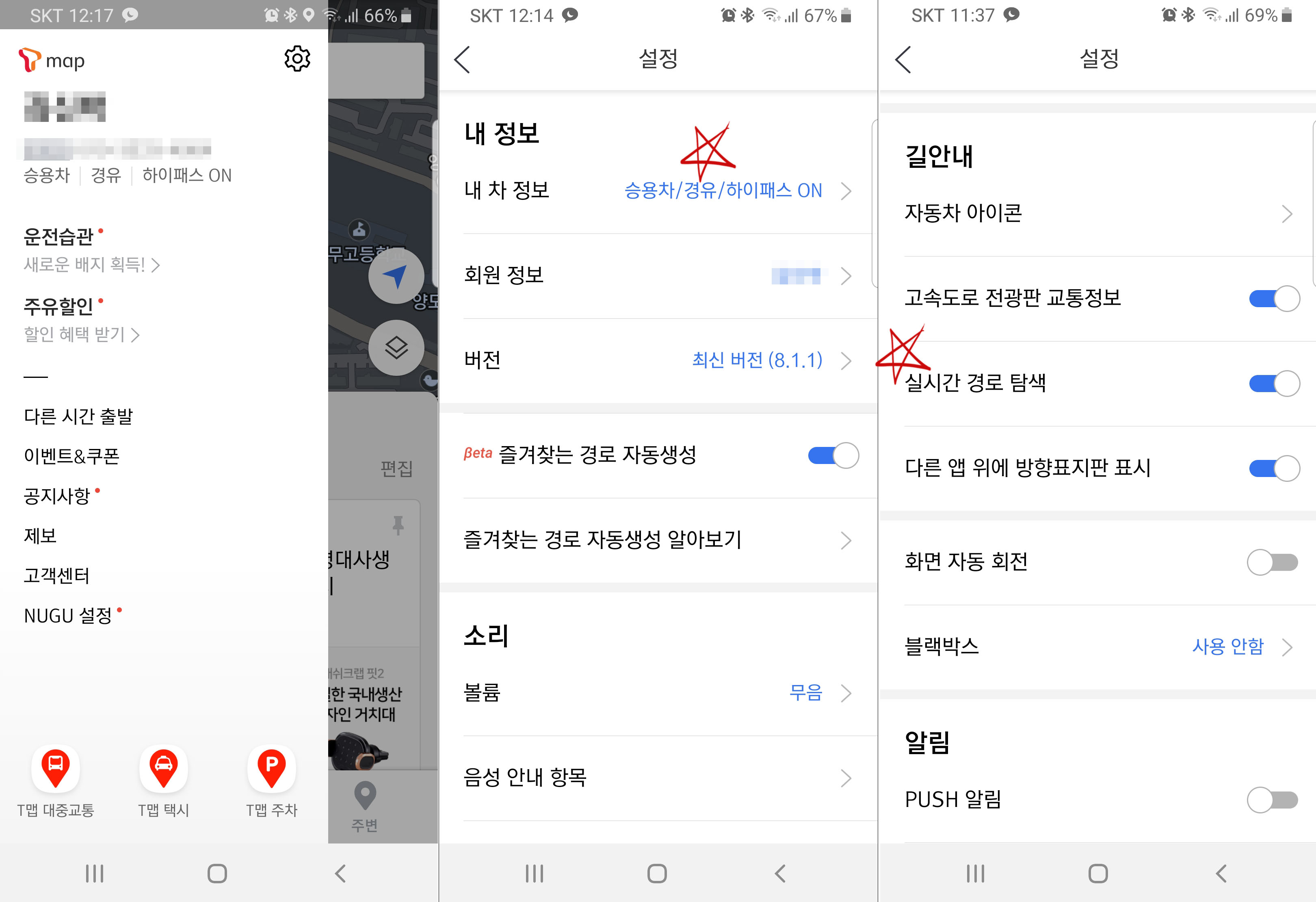 T맵은 따로 로그인을 하거나 설정을 하지 않아도 이용에 무리는 없지만, 위 두 가지 설정사항이 적용되었을 경우 더 쓸만한 내비로 변신합니다. 한번 체크해보세요.