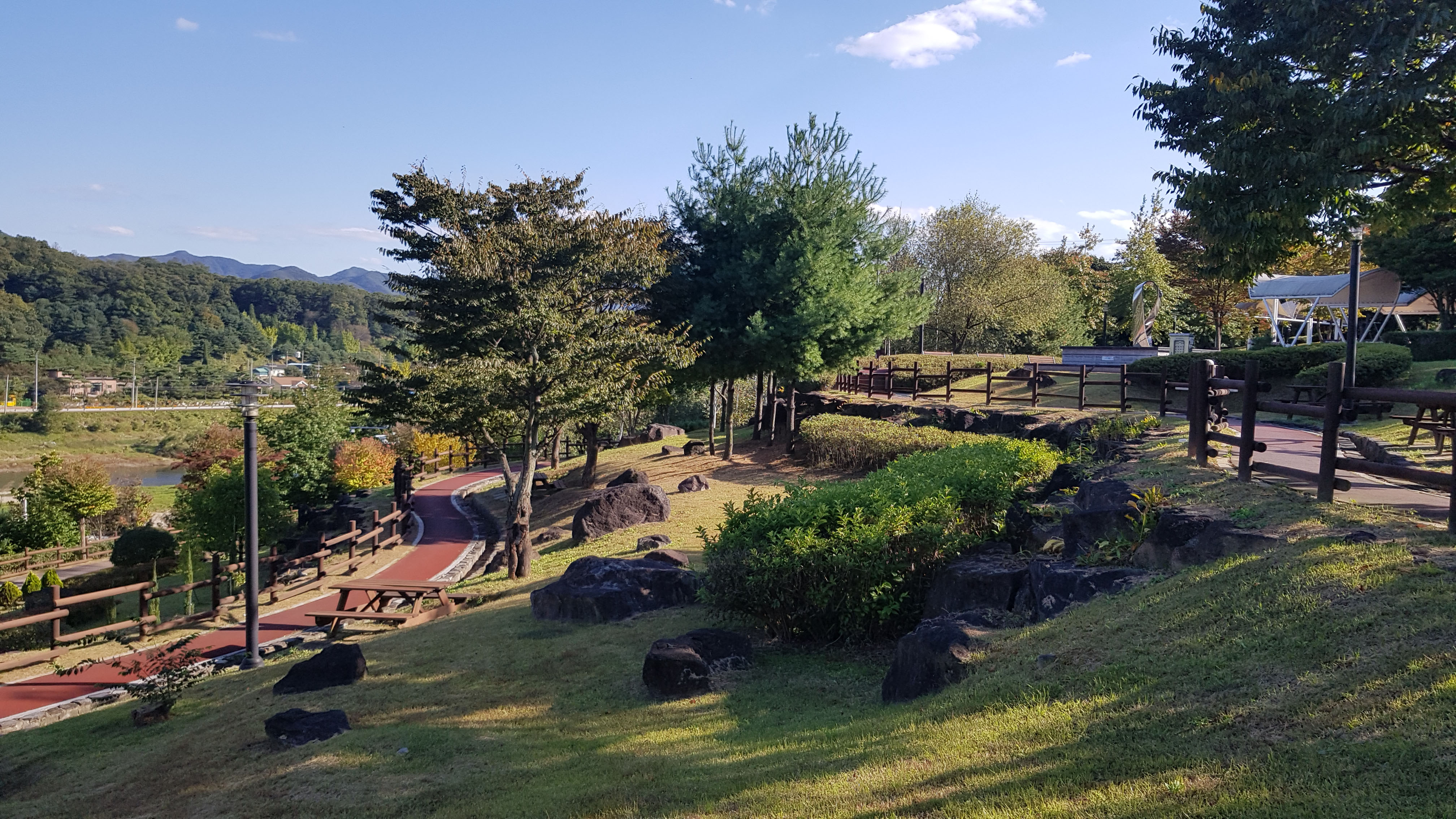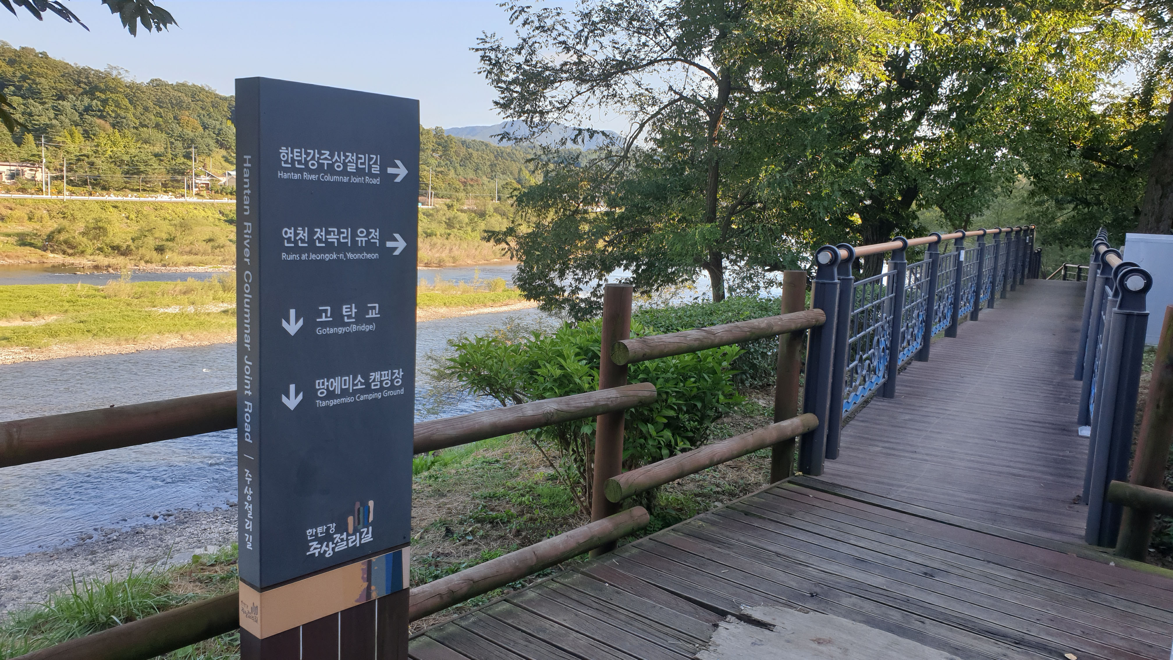 한탄강 옆의 경사지를 공원으로 만들다보니 공원내에서도 경사를 느낄 수 있는데요, 장점이기도 하고 단점이기도 합니다. 장점은 어디서나 강뷰를 볼수있고 강따라 조성된 산책길을 이용할 수 있다는 점이고 단점은 넓게 펼져친 잔디밭 같은게 없기에 활동적인 무언가를 하기에는 어렵다는 점입니다.