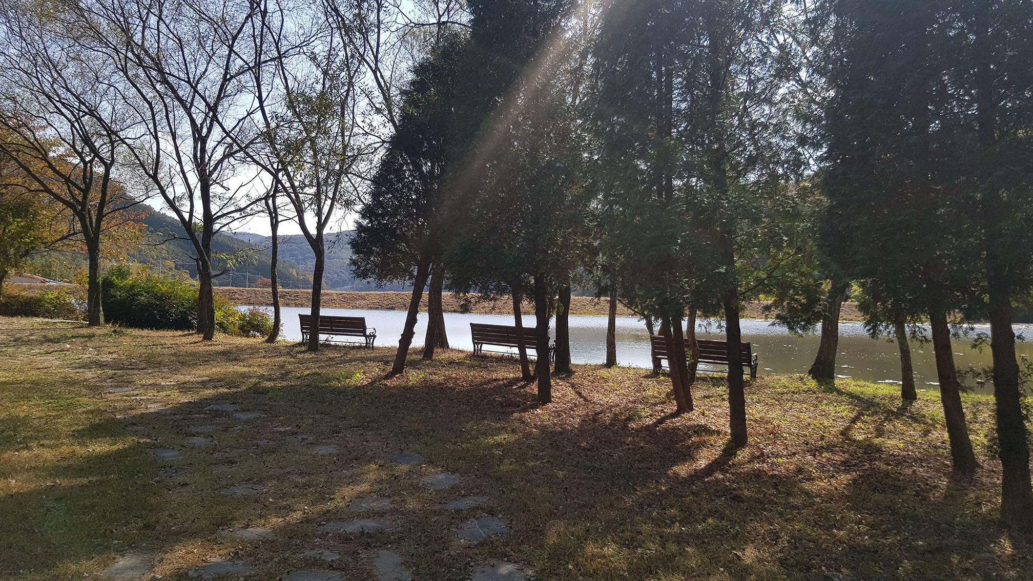 스탬프를 찍고 그 엽서를 이렇게 끼워서 모아(?)놓았네요.출구 밖으로 나가봅니다. 엇 저기 멀리 동상이...기념관을 둘러보고 경건한 마음으로 나왔을 때 만나는 사명대사. 동선설계가 잘 되어 있네요 ^^;맑은 가을하늘입니다.노천 무대로 쓸 수 있는 공간도 한켠을 차지 하고 있습니다. 쓰일 일은 별로 없어 보이네요.한쪽으로는 대나무가 울창히 자라있습니다. 사명대사의 곧은 기개를 상징하는 것일까요?옆으로 닿아있는 저수지쪽으로 의자를 내어 주위의 풍경을 감상할 수 있게 만들어두었네요. 느낌 좋죠?밀양시에서 신경써서 만들고 관리하는 사실이 느껴집니다.맑은 가을날씨에 둘러본 사명대사 유적지는 참 좋았습니다.