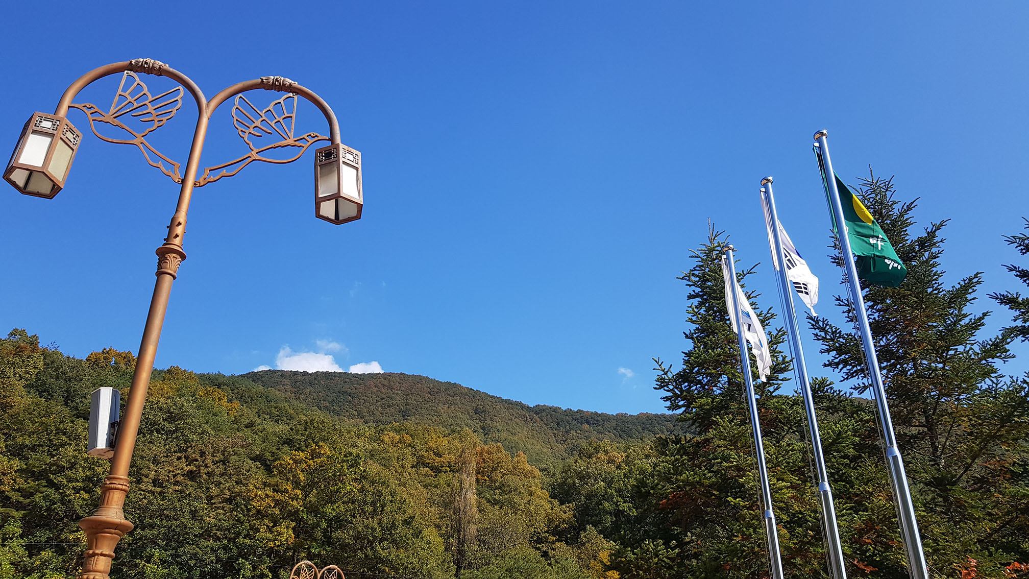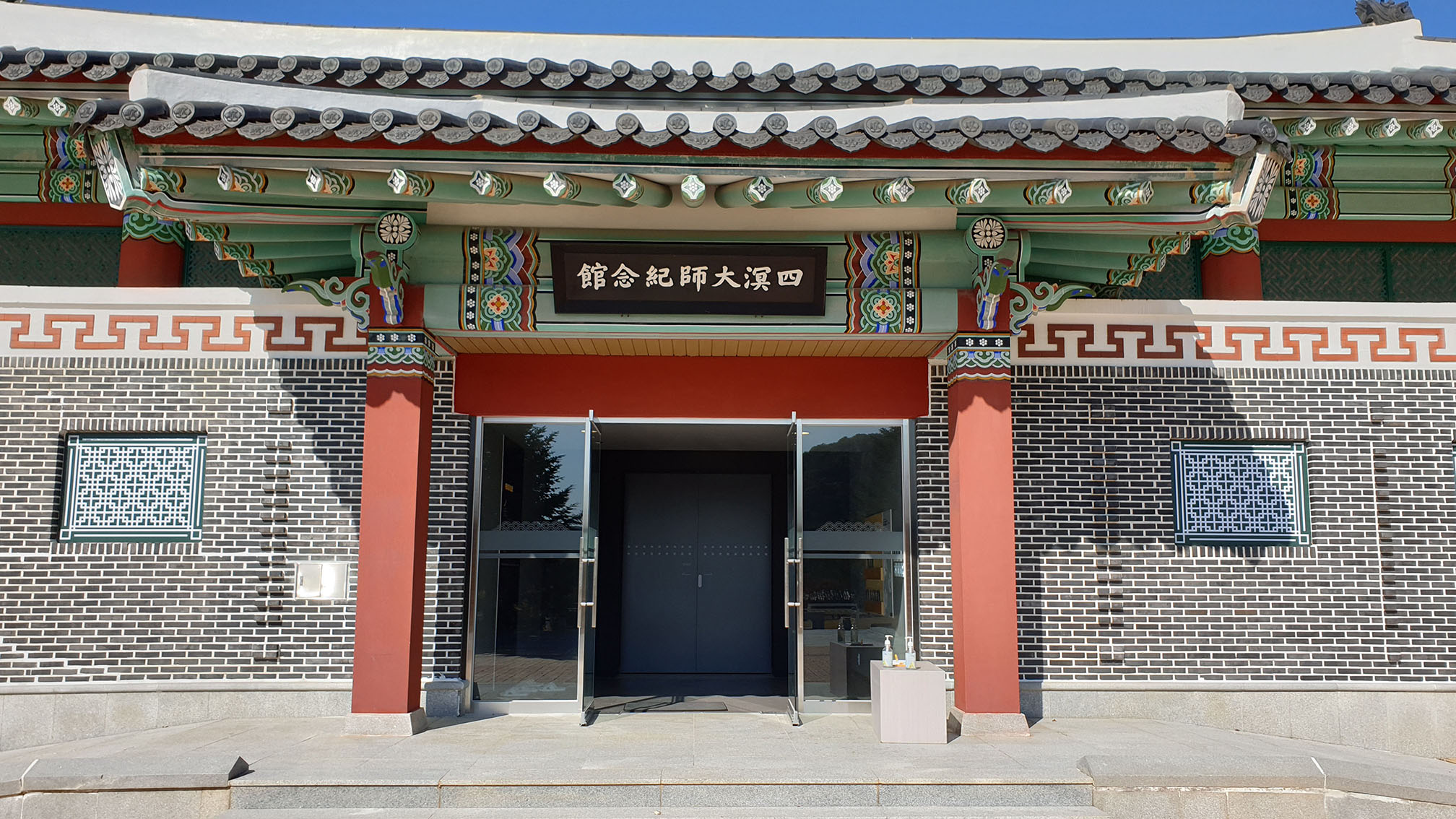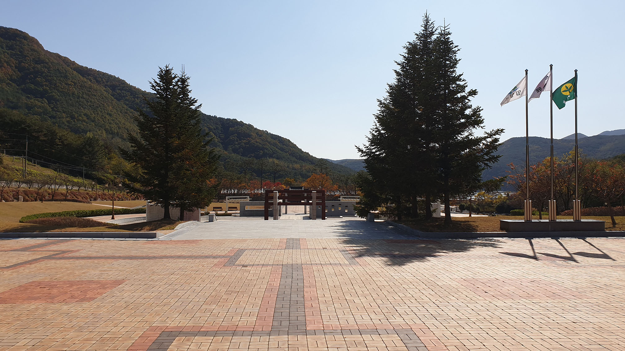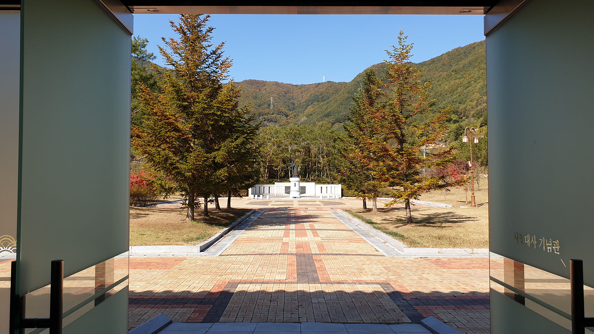 주위가 산으로 둘러쌓여있고 그 가운데 기념관이 있으니 포근한 느낌을 받습니다.