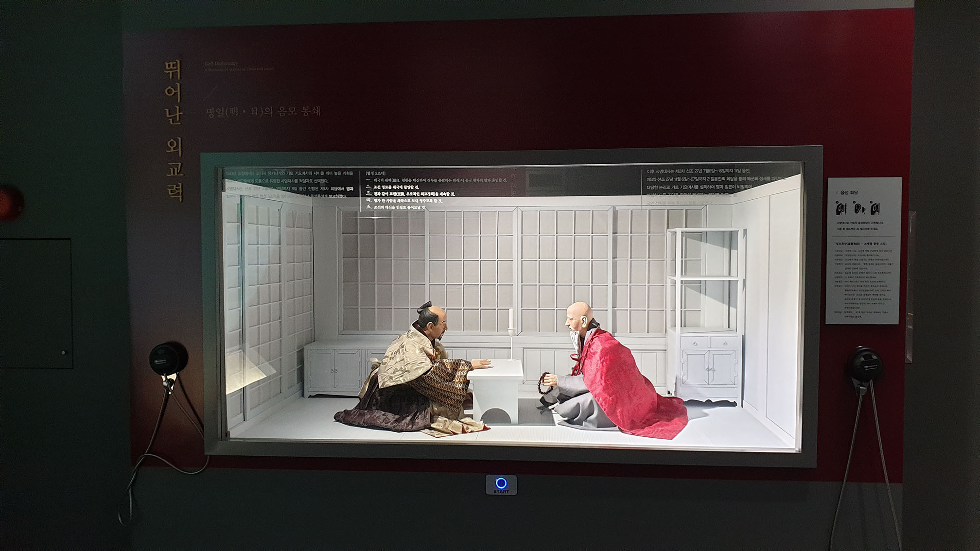 적장(아마도 도쿠가와 이에야스겠죠)을 만나 담판을 짓는 사명대사. 뛰어난 외교력을 설명하네요.이 역시 퀄리티가 상당하네요.