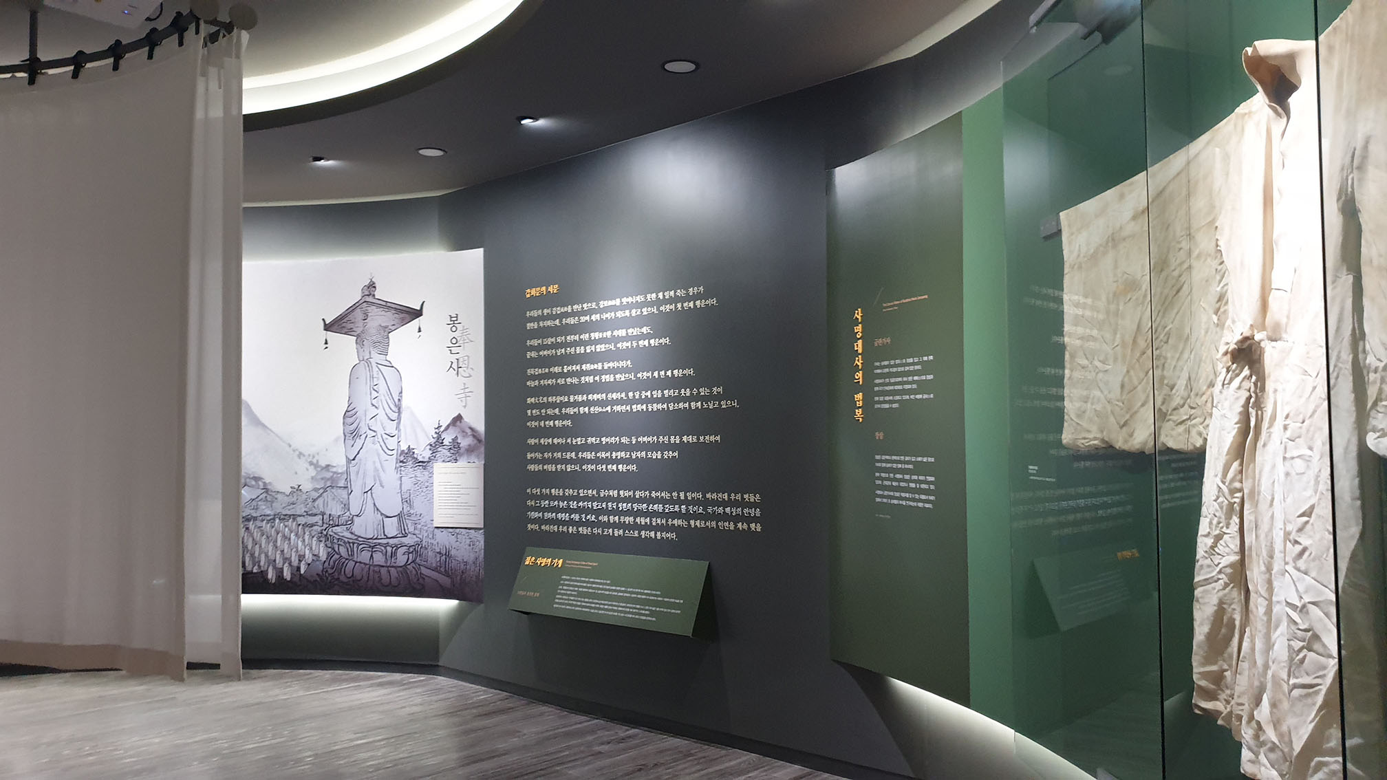 사명대사가 남긴 작품들도 함께 전시되어있습니다.사명대사의 영정입니다. 법명인 유정이란 이름이 옆에 쓰여있네요.봉은사, 월정사... 사명대사를 설명할 때 빠지지 않고 등장하는 사찰입니다.불교에 관한 자료도 함께 볼 수 있습니다.종교에 뜻이 없는 제 눈에는 그렇게 들어오지 않네요.승병에 관한 설명도 빠지지 않고언제 보아도 떳떳하지 못한 조선의 역사를 만나는 기분이란. 절대 반복되어선 안될 일입니다.