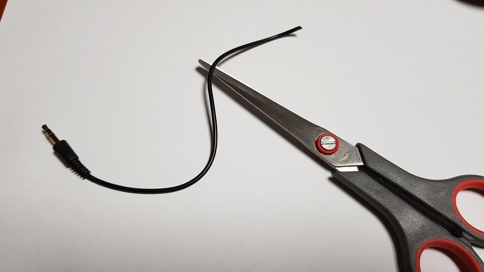 이어폰이던 헤드폰이던 아님 스피커케이블이던 뭐든 좋습니다. 3.5파이 사운드 단자에 들어가는 케이블이라면 안테나가 될 수 있으니 잘라서 사용하면됩니다. 저는 사진 정도의 길이로 잘랐는데요, 실제 작업시에는 조금씩 잘라가며 문제없는지 확인이 필요합니다. 댕강 잘랐는데 수신에 문제있음 안되니까요.