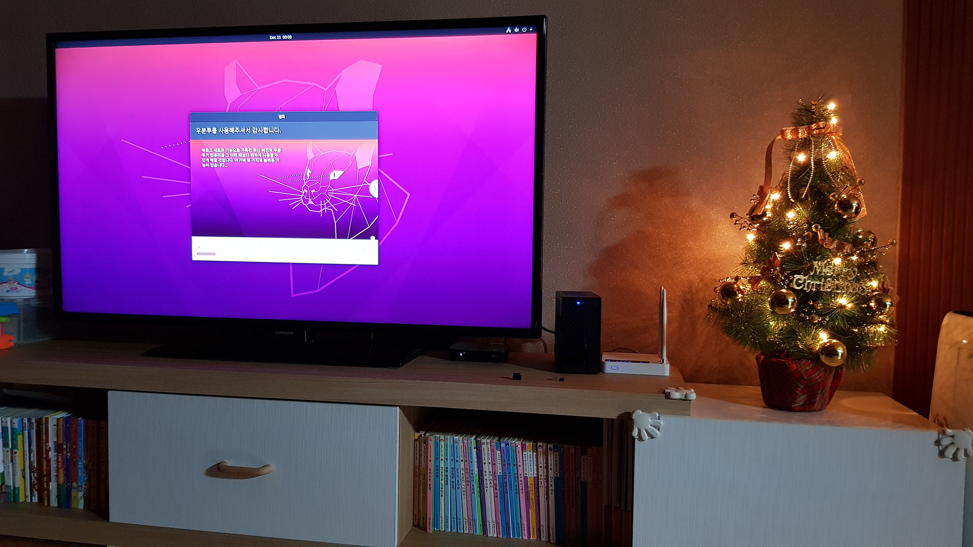 윈도우10 설치시간의 반의반도 안되는 시간내에 우분투는 설치완료되는군요. 그리고 UI의 첫인상은 마치 윈도우와 맥을 절반씩 섞어놓은 듯합니다. 더 사용해봐야 알겠지만 윈도우보다 훨씬 정갈한 느낌이 드는 UI를 가지고 있네요.