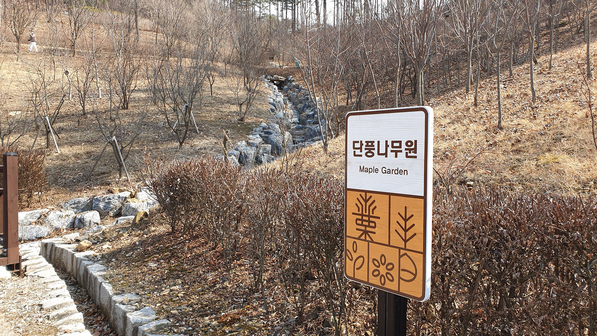 수목원을 가로질러 냇물이 내려오게끔 만들어져있는데, 지금은 물이 없습니다. 수량이 많아질때가 되면 볼만하겠네요.