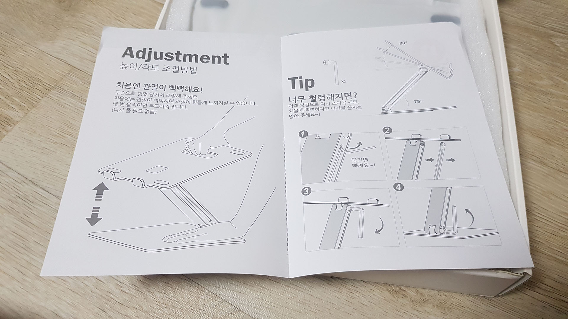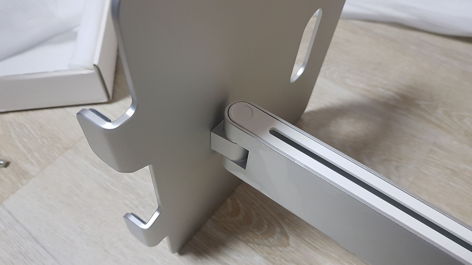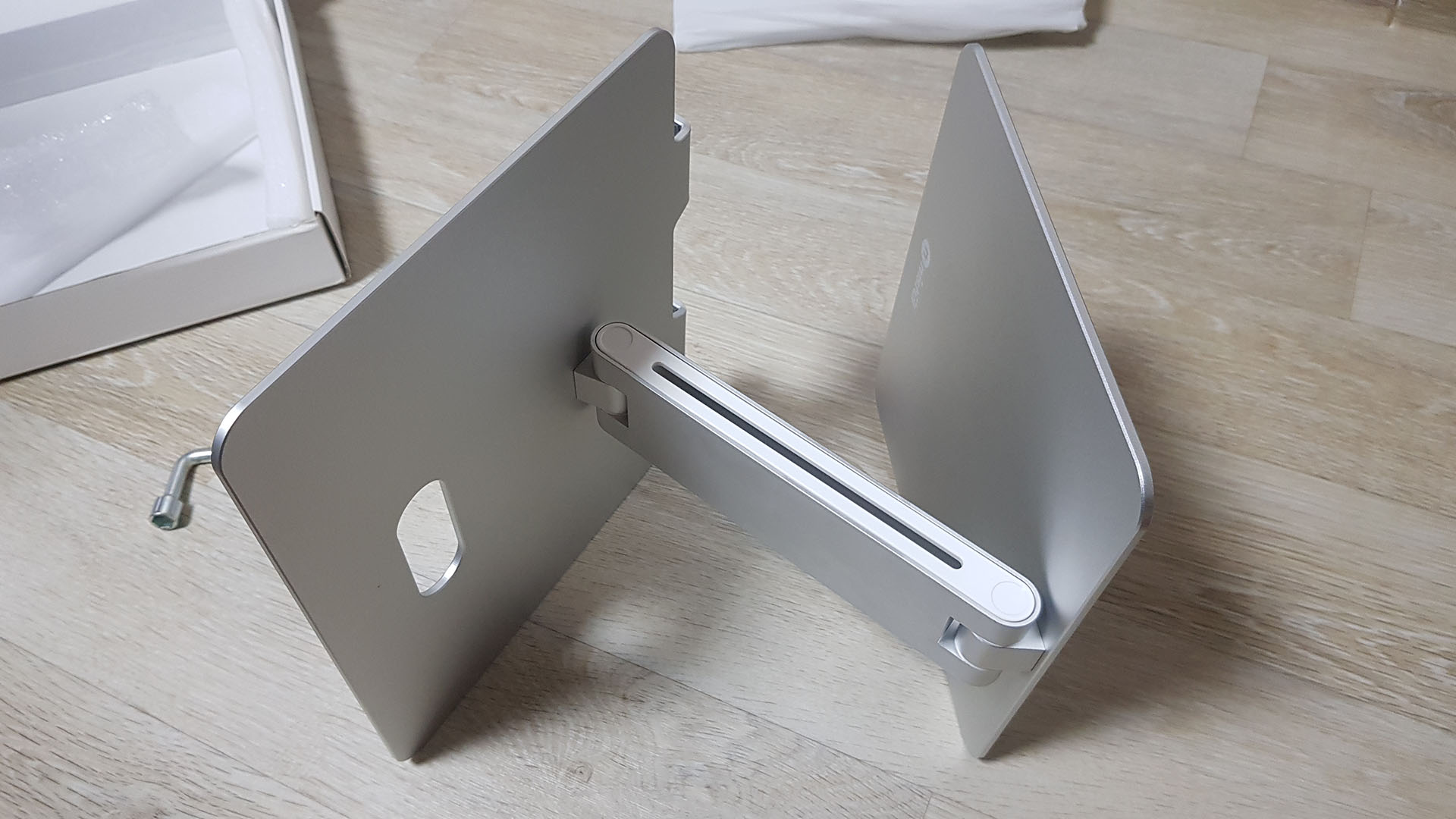 크 진짜 빡빡합니다. 하지만 노트북 스탠드들이 초반엔 다 이렇게 뻑뻑하죠. 국내 COSY사 제품을 회사에서 써본적이 있는데 그때도 힘을 꽤나 쓴듯한 기억이 나네요. 암튼 힘이 약한 여성분이라면 조금 난처하실수도.