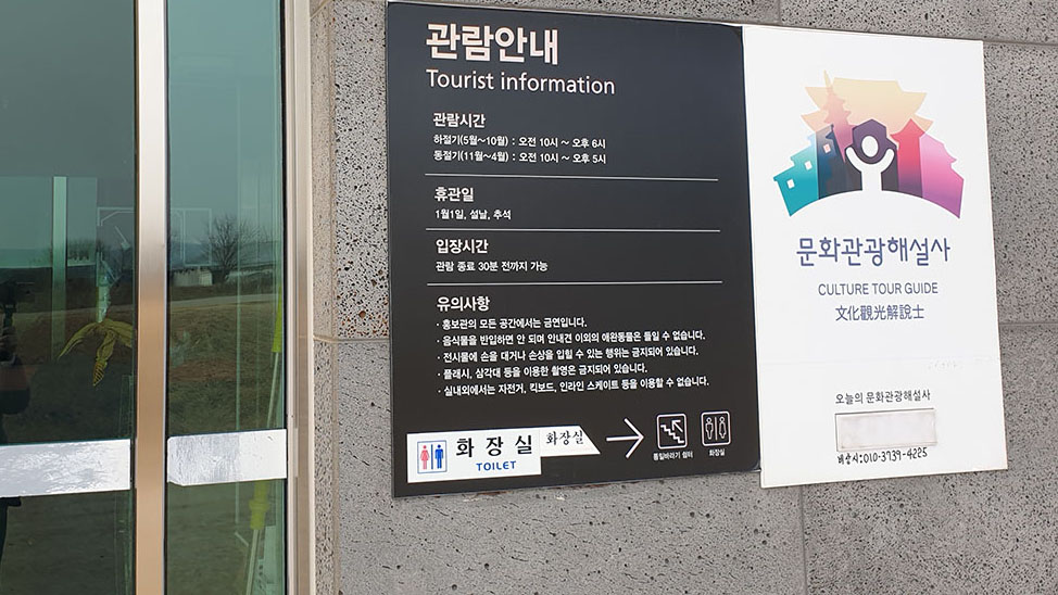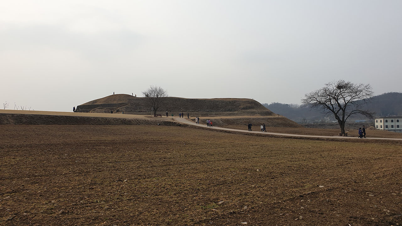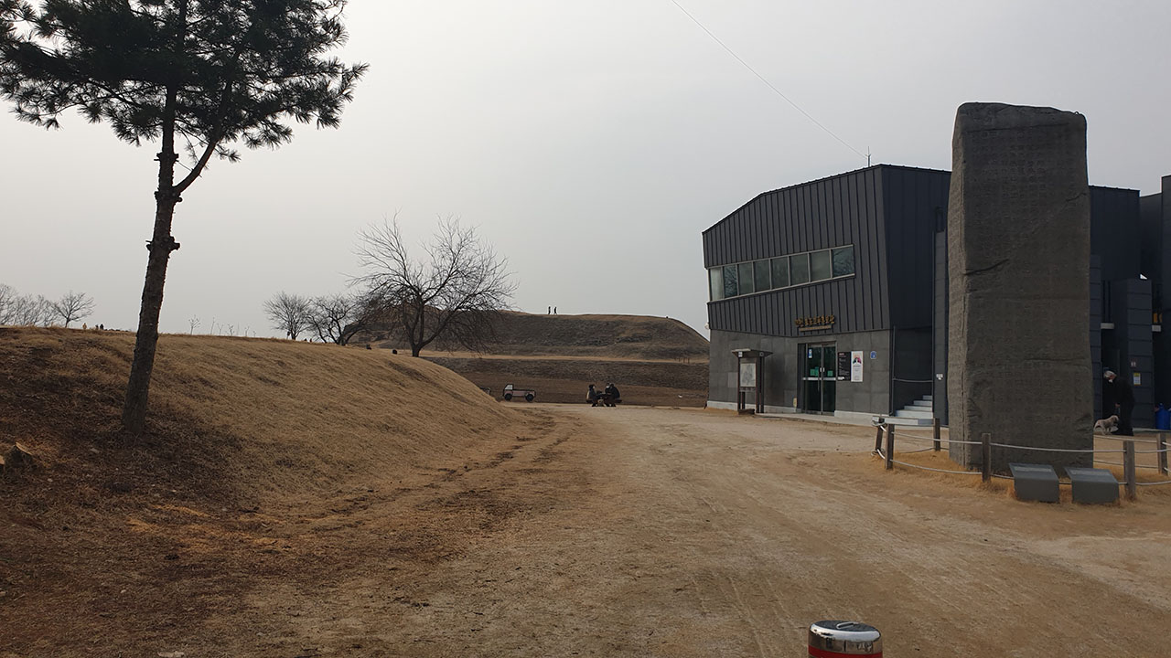 홍보관의 외관 형상(라인)이 고루를 닮은 듯해서 희미하게나마 연상은 되지만, 그걸 느낄 수 있는 사람은 드물 것 같습니다. 차라리 일부분이나마 돌과 흙으로 쌓아올린듯한 느낌을 표현하는 등 일반 관람객이 쉽게 알아챌 수 있는 특징을 넣었다면 더 좋았겠네요.