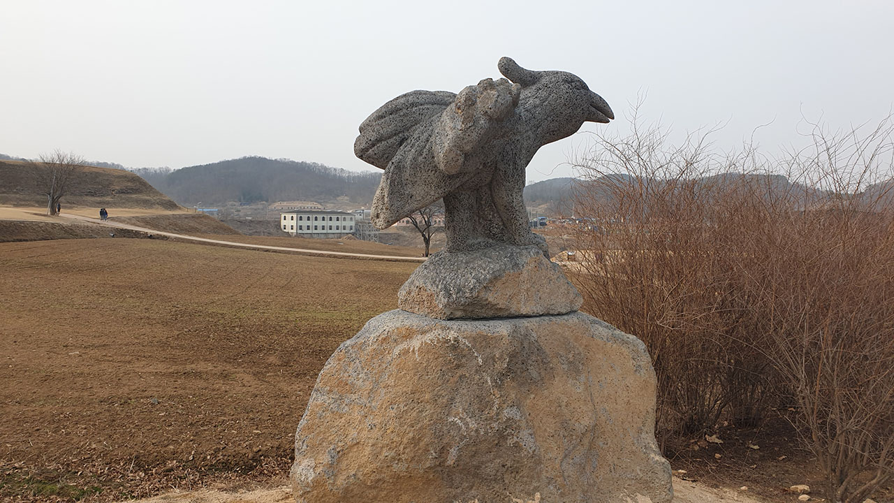 어떤 새인지는 모르겠으나 고대의 사람들이 표현했을법한 형태로 돌로 만든 새 조형물도 있었네요.