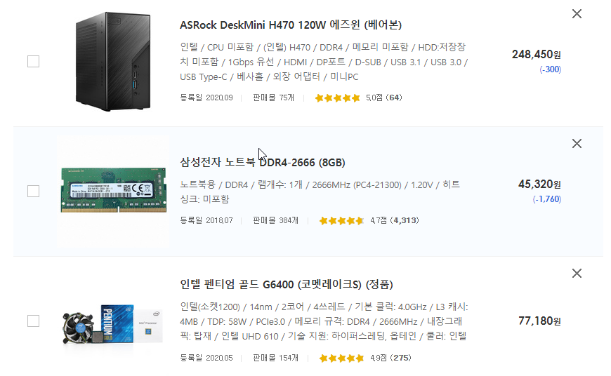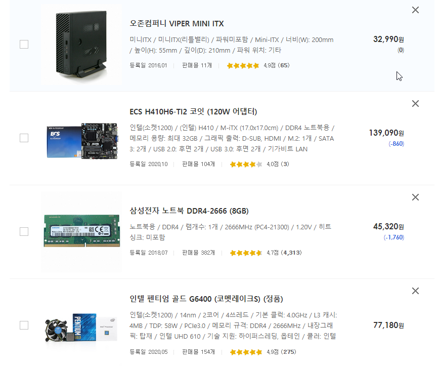 사실 미니PC는 처음이 아닙니다. 2016년에 구입한 미니PC를 지금까지 사용중에 있는데, 그 만족도가 상당히 큽니다. 그러다보니 비슷한 모델을 만들 생각으로 가장 먼저 찾아본 부품들은 이겁니다.