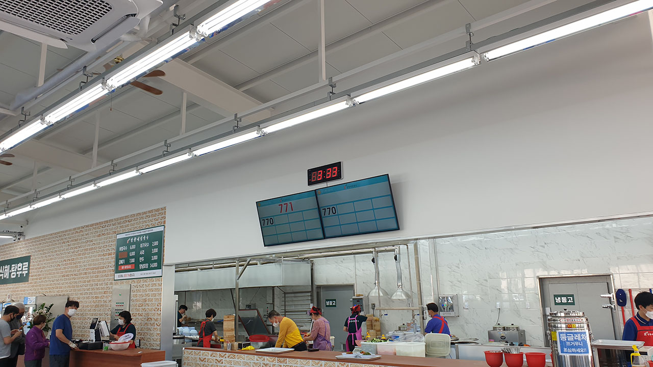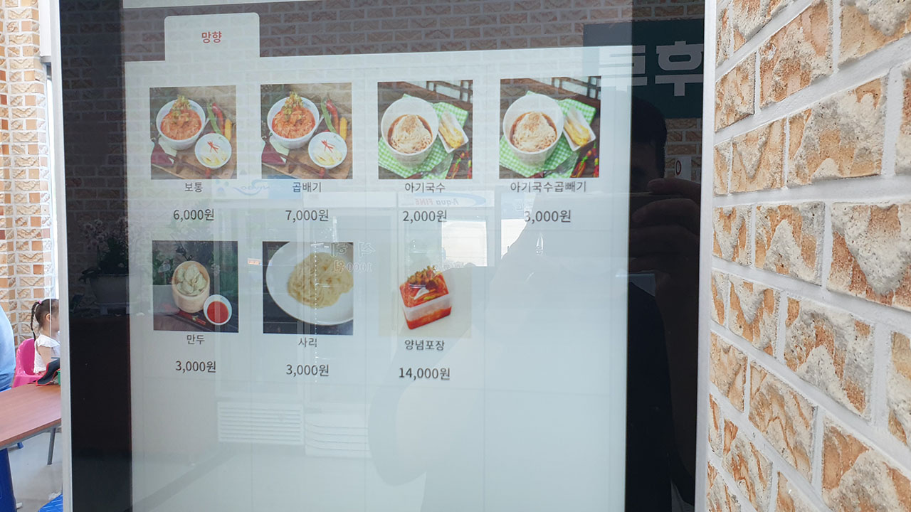 전광판(모니터)는 여러개가 가게 곳곳에 설치되어 있습니다. 우측의 메뉴표 역시 예전의 구성과 동일한데요, 가려진 메뉴 하나는 아마도 잔치국수로 보입니다. 가려놓은 방식 또한 예전과 변함없네요 ㅎ