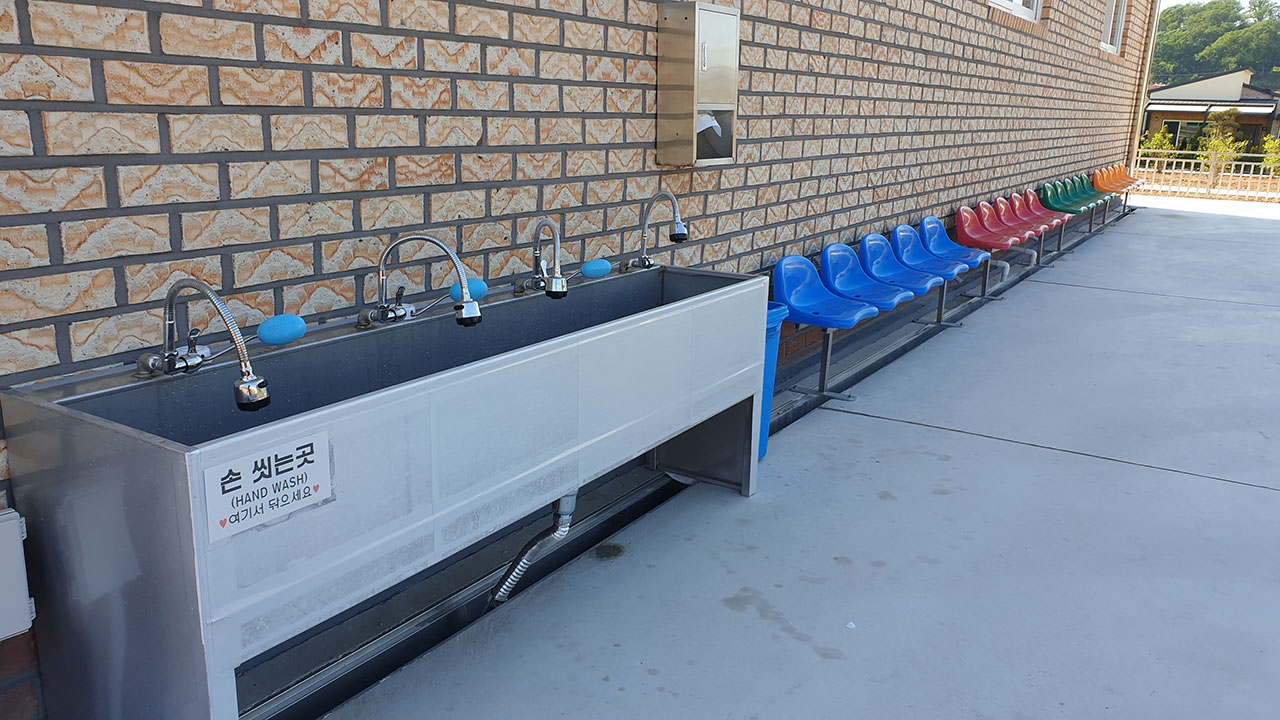 신관 출입구는 이렇게 생겼습니다. 입구앞에 손을 씻을 수 있도록 만들어 둔 시설이 맘에 듭니다. 아주 중요한 것을 아주 실용적으로 구현해놓은 사장님의 주관이 느껴집니다.